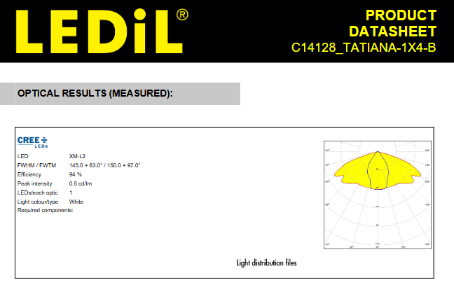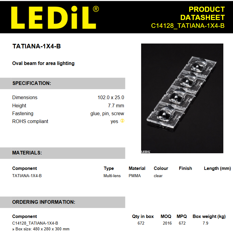 เลนส์ LED C14128_TATIANA-1X4-B LED และประกอบเลนส์รูปสี่เหลี่ยมผืนผ้าแสงรูปไข่สำหรับพื้นที่