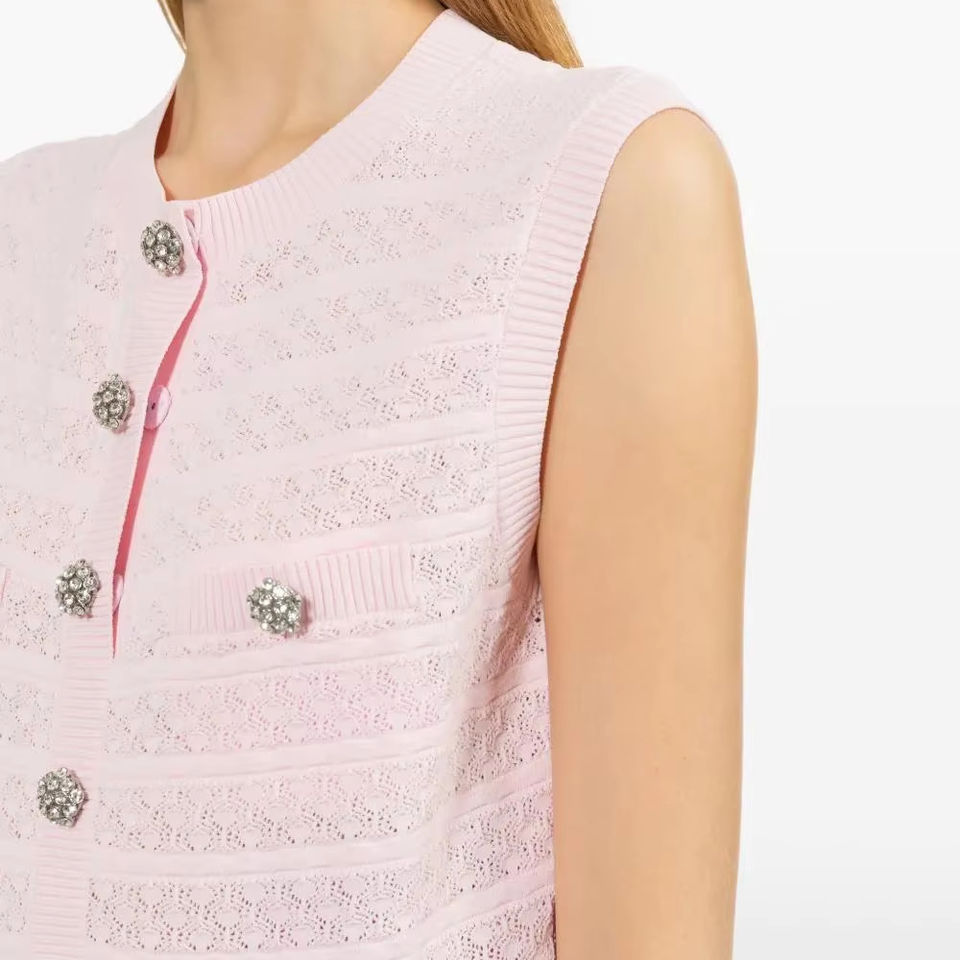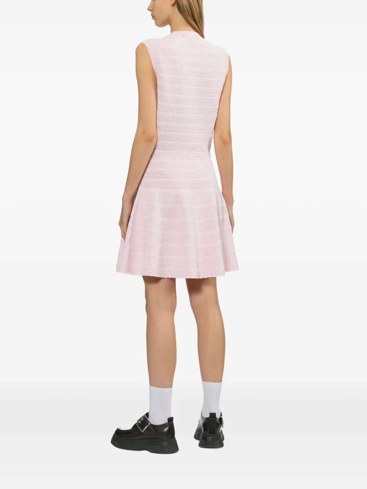 เดรสทรงเอไลน์สีชมพูอ่อนแบบไม่มีแขน คอทรงกลม ผ้าถักเนื้อสัมผัสพิเศษ ประดับคริสตัล ความยาวเหนือเข่า สำหรับผู้หญิง รุ่นสั่งทำพิเศษจาก Leduo