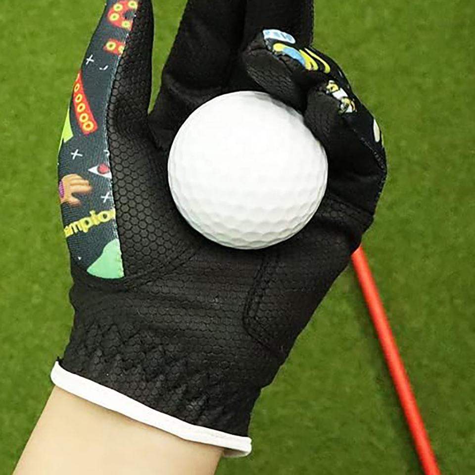 ถุงมือกอล์ฟตาข่ายระบายอากาศสำหรับเด็กถุงมือกอล์ฟสำหรับเล่นกอล์ฟในสวนทำจากเส้นใยกันลื่นสำหรับมือซ้ายและขวา