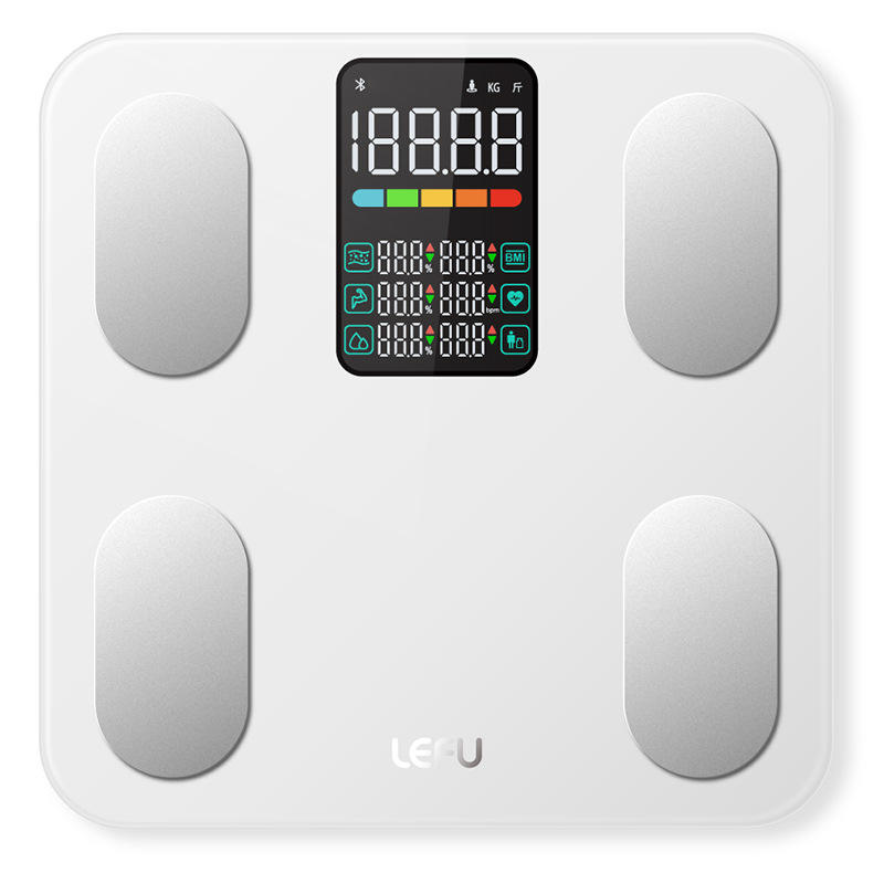 เครื่องชั่งน้ำหนักอัจฉริยะ Lefu หน้าจอสี เชื่อมต่อแอปบลูทูธ เครื่องชั่งสุขภาพความแม่นยำสูง ขนาด 300x300 มม.