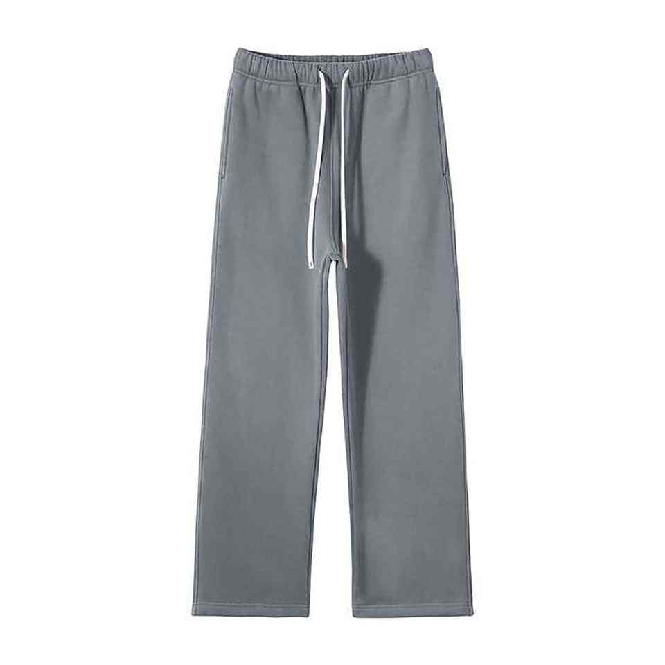 กางเกงวิ่งขายาวสำหรับผู้ชายในเมืองกางเกงแนวสตรีทแวร์ทรงหลวมกางเกงขายาวสีเทาสไตล์วินเทจเอวยางยืด