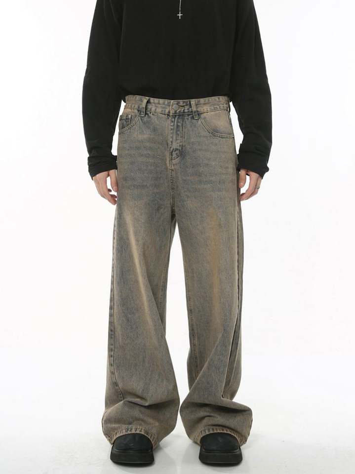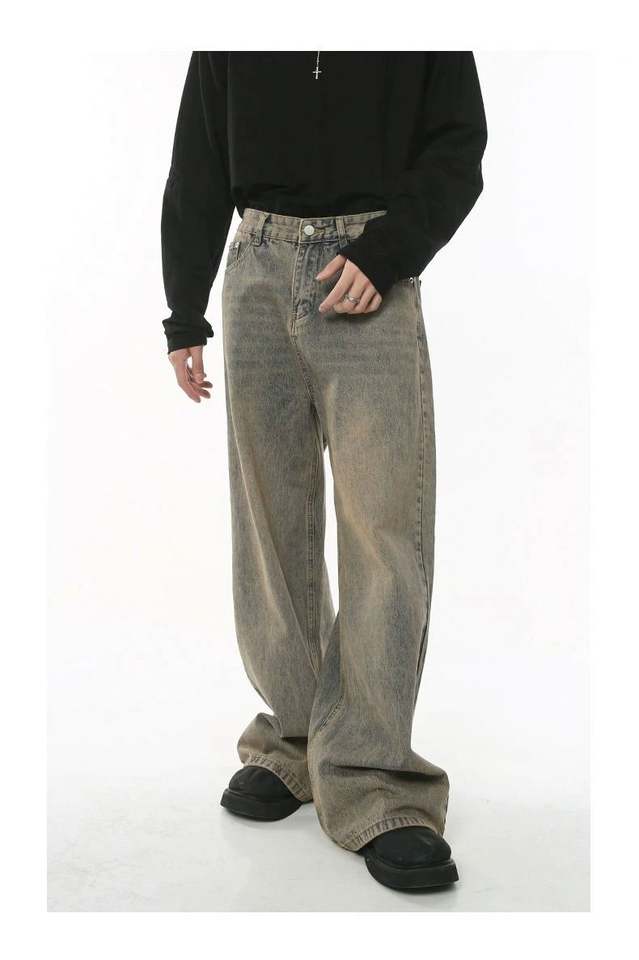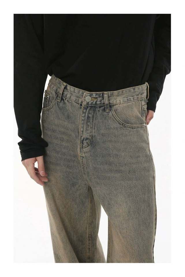 กางเกงยีนส์วินเทจของผู้ชายจากดีไซเนอร์ในตำนานทำจากอินสตาแกรมทรงหลวมแต่งได้ทุกฤดูกาล
