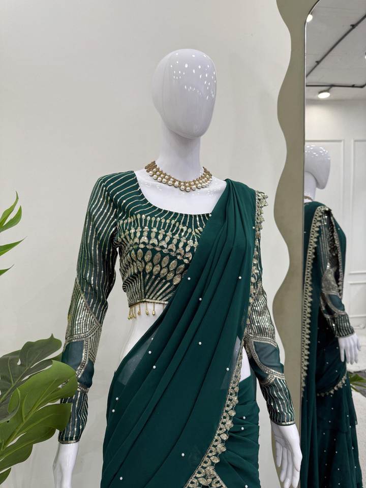 เสื้อส่าหรีสไตล์บอลลีเยเนะส่าหรีแบบอินเดียหรูหราชุดปาร์ตี้ปากีสถานและนักออกแบบงานแต่งงานส่าหรีจัดส่งฟรีทั่วโลก