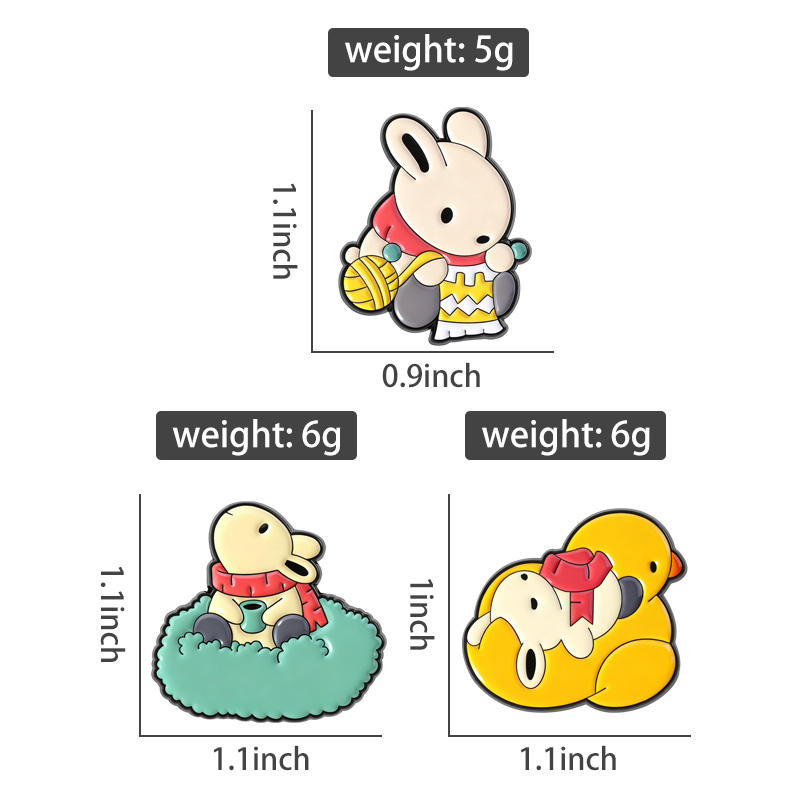 เข็มกลัดกระต่ายน้อยน่ารัก Tsuki Rabbit สไตล์การ์ตูน งานเคลือบเงา งานถักนิตติ้ง ของขวัญเครื่องประดับสำหรับเพื่อน