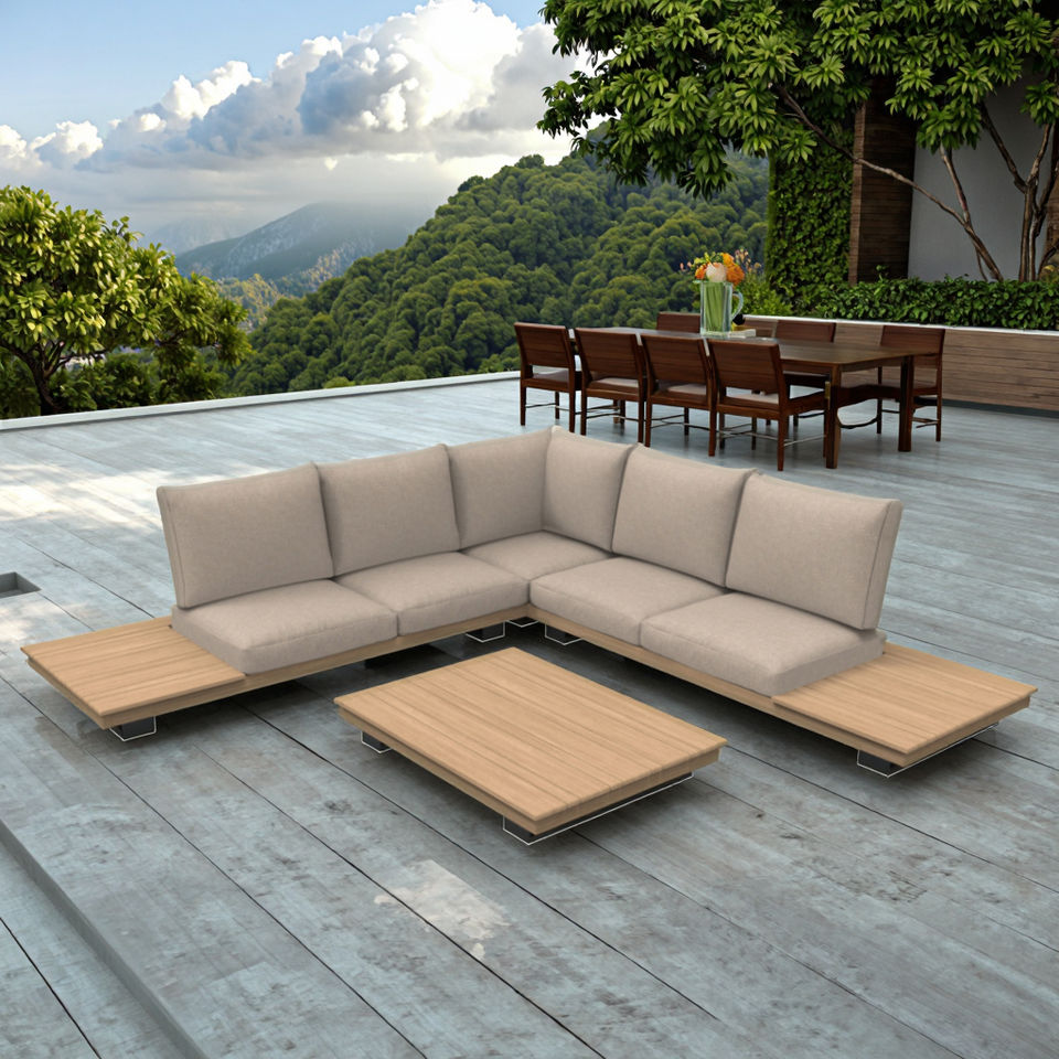 ชุดเฟอร์นิเจอร์ไม้สักทันสมัยสไตล์พักผ่อน พร้อมหวายเทียม PE สำหรับรับประทานอาหารกลางแจ้ง สวน ลานบ้าน โรงแรม ห้องนั่งเล่น ลานภายใน อพาร์ตเมนต์ กันน้ำ