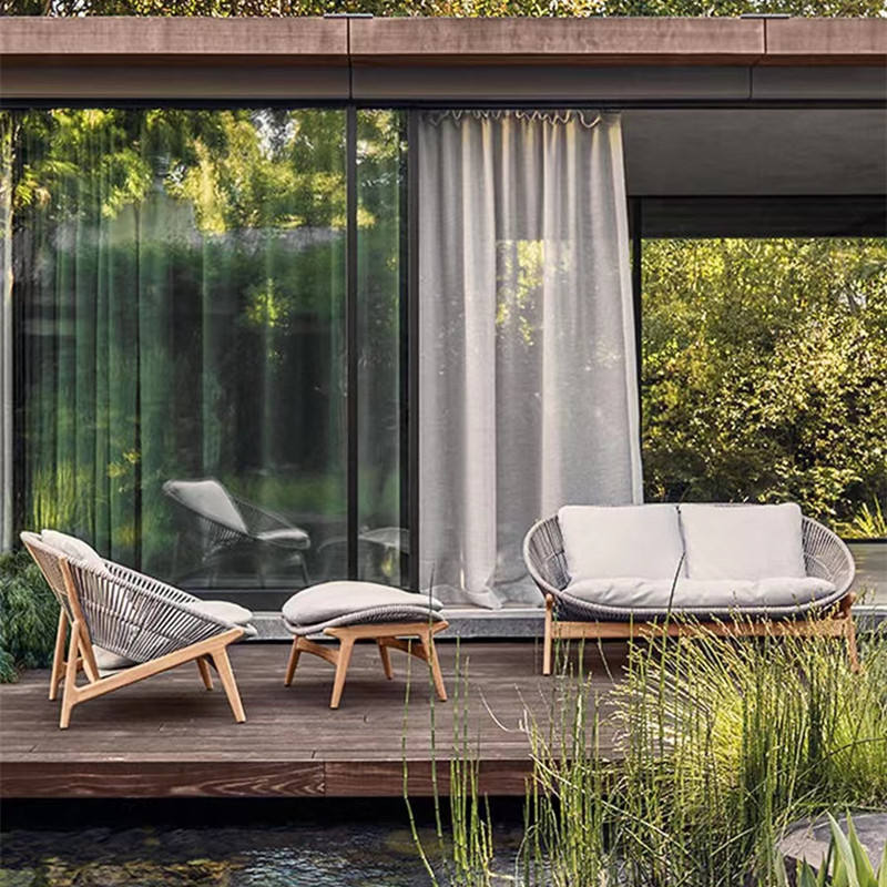 โซฟาหวายกลางแจ้งสำหรับพักผ่อน, โต๊ะกาแฟกลางแจ้ง, วิลล่าแบบผสมผสาน, เก้าอี้ไม้สักกันน้ำสำหรับคนขี้เกียจ