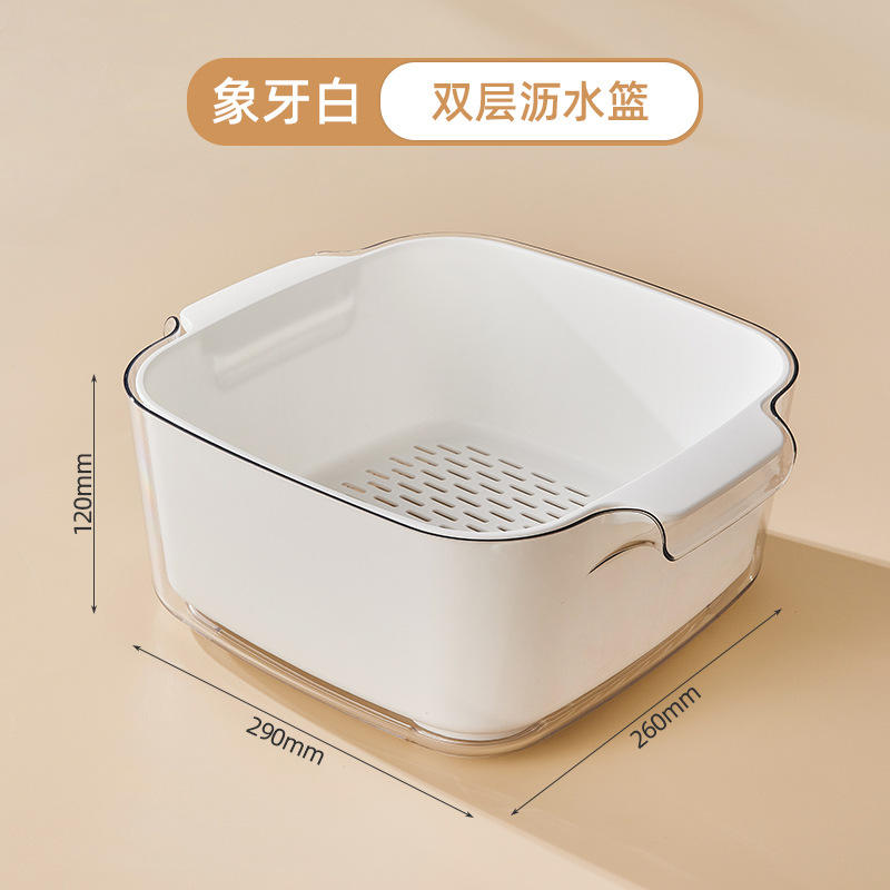 อ่างล้างผักสองชั้น Lelangek ขนาดใหญ่ทรงสี่เหลี่ยม ผลิตจากพลาสติกสำหรับสัตว์เลี้ยง ปลอดสาร BPA พร้อมตะกร้าสำหรับล้างผลไม้ในครัว