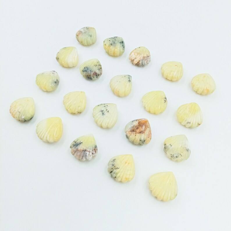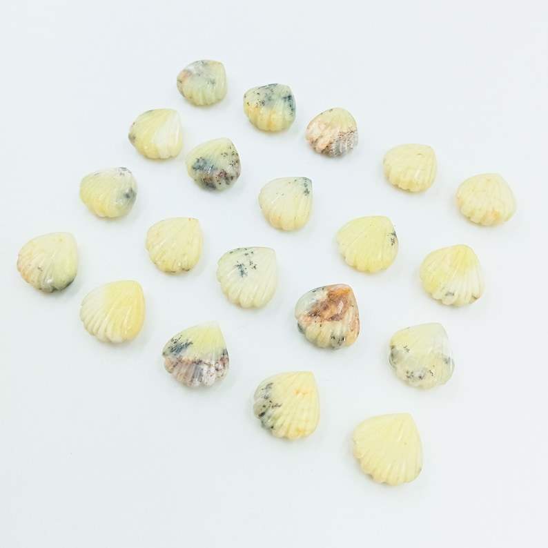 อัญมณี:ลูกปัดเปลือกหอยทรงโค้งลายเลมอนเดนไดรต์ธรรมชาติ