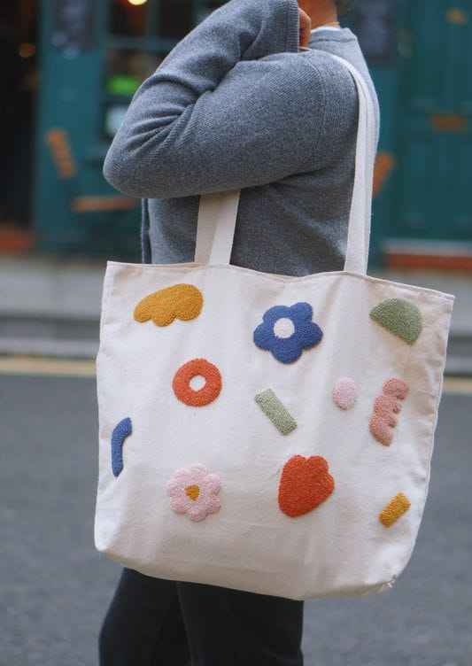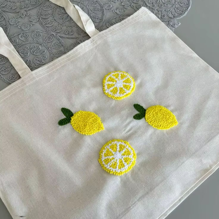 Lemon Embroidery Cotton Canvas Tote Bag Made In India Eco-Friendly Reusable Shopping Carrier Large Capacity Handbag