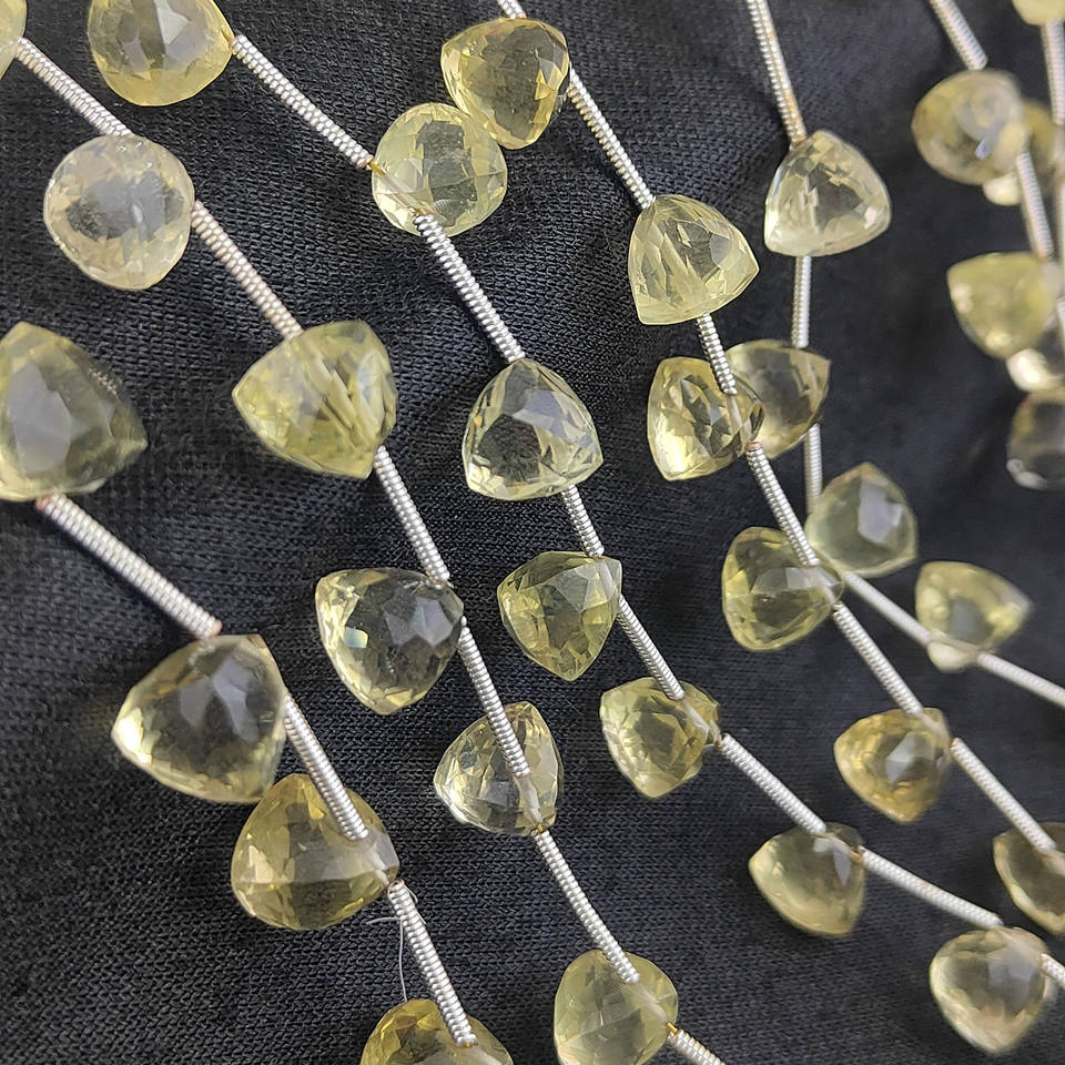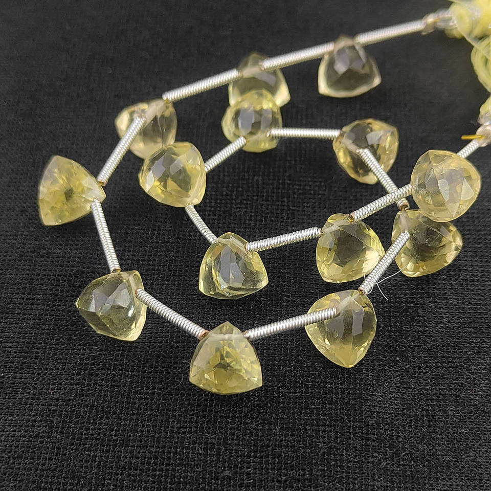 ลูกปัดเลมอนควอตซ์ทรงทริลเลียนขนาด 7-8 มม. เจียระไนเหลี่ยมเพชร เกรด AAA รับรองคุณภาพ สำหรับทำเครื่องประดับ 13-14 เม็ด ความยาว 8 นิ้ว