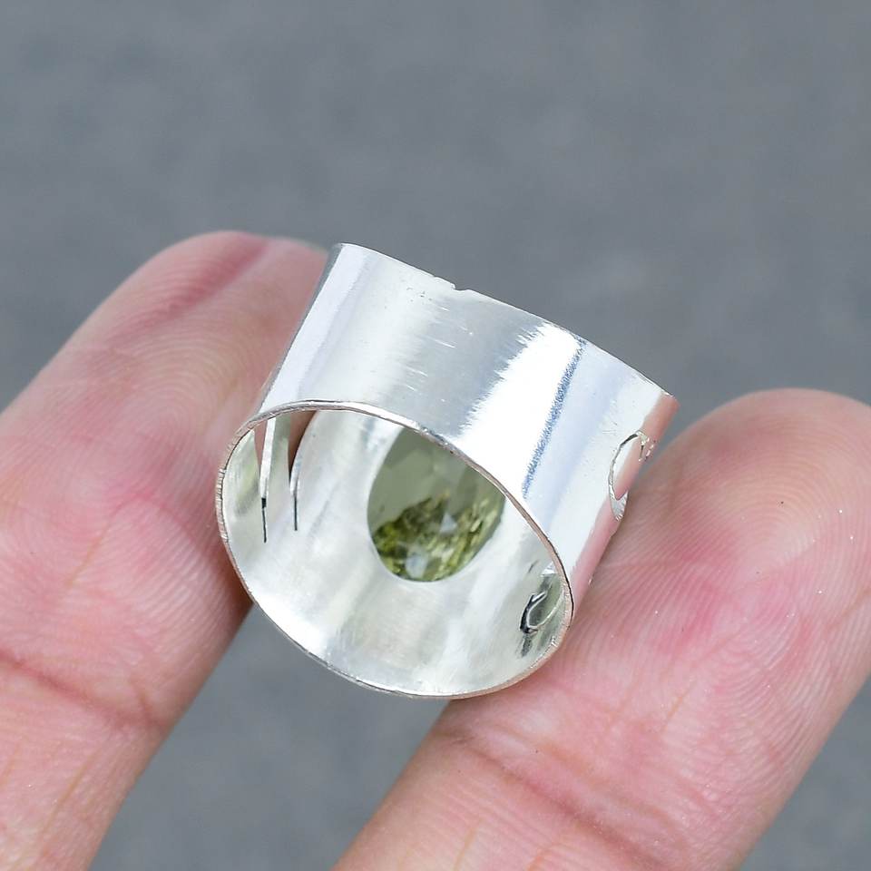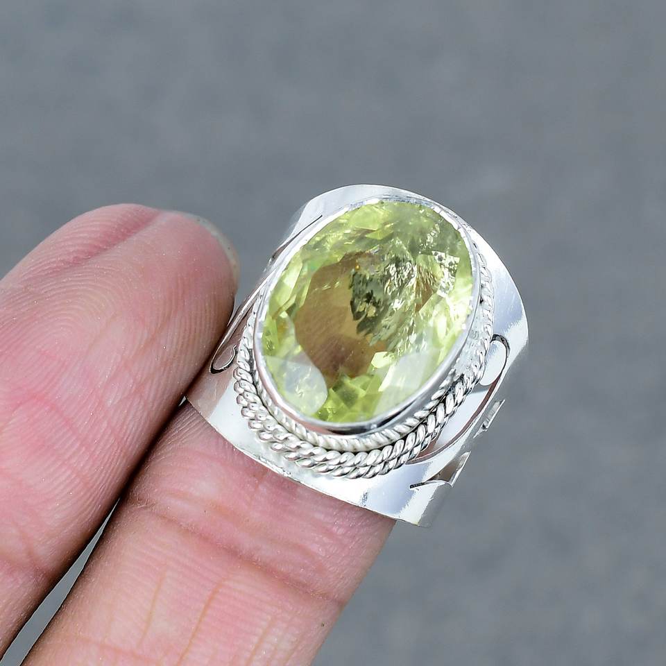 เลมอนควอตซ์925เงินแหวนพลอยเจียระไนทองเหลืองเครื่องประดับงานประดิษฐ์ทำด้วยมือแหวนของขวัญแบบเรียบง่ายสำหรับเธอ