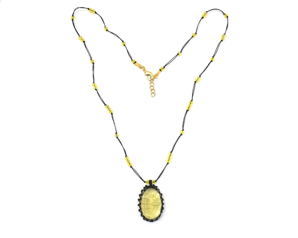 จี้ห้อยคอ ลูกปัด หินเลมอนควอตซ์ ทรงรี