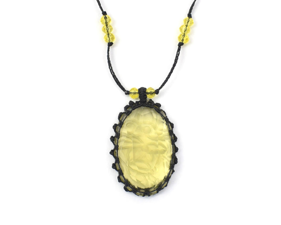 หินเลมอนควอตซ์พร้อมลูกปัดทำด้วยมือทรงรีแฟชั่นแกะสลักหินร้อยสร้อยคอจี้
