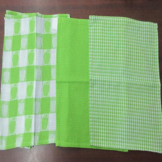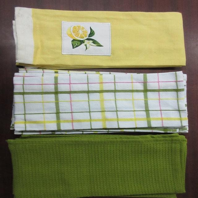 100% ผ้าฝ้ายอินทรีย์ GOTS ใบรับรองแห้งเร็วขนาดที่กำหนดเองมะนาวสีเหลืองสีเขียวสีขาวตรวจสอบชุด3ผ้าขนหนูครัวสำหรับบ้าน