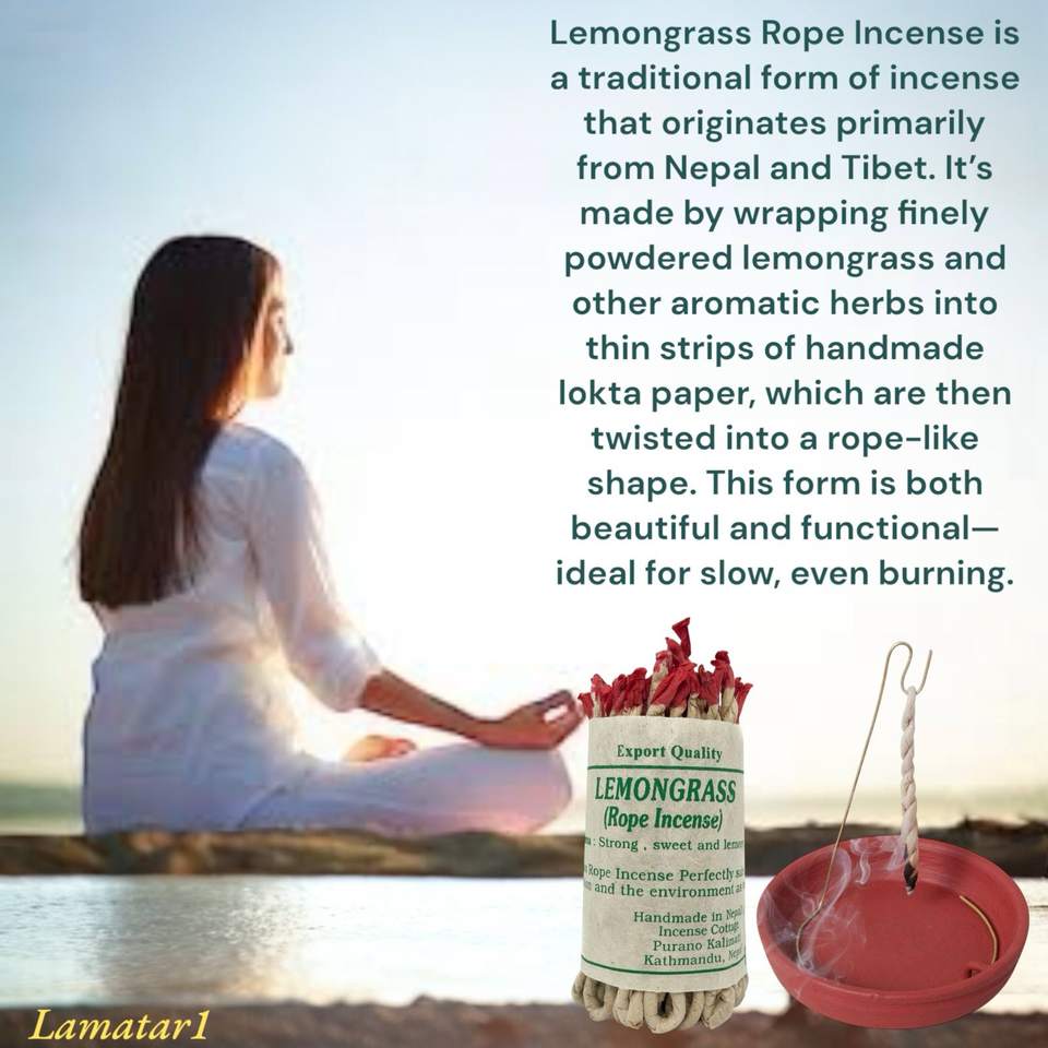 ธูปเชือกตะไคร้หอมทิเบตคุณภาพสูง ทำด้วยมือจากเนปาล เป็นมิตรกับสิ่งแวดล้อม ทนทาน กลิ่นหอมธรรมชาติ นาน 20-30 นาที เหมาะสำหรับโยคะ