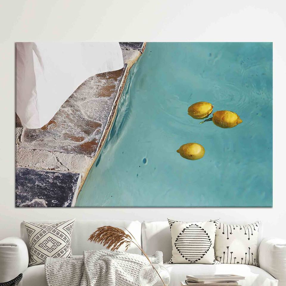 ภาพพิมพ์ผ้าใบลายสระว่ายน้ำเลมอนส์: ของตกแต่งผนังห้องนั่งเล่นสไตล์โบโฮ, ผ้าใบหุ้ม