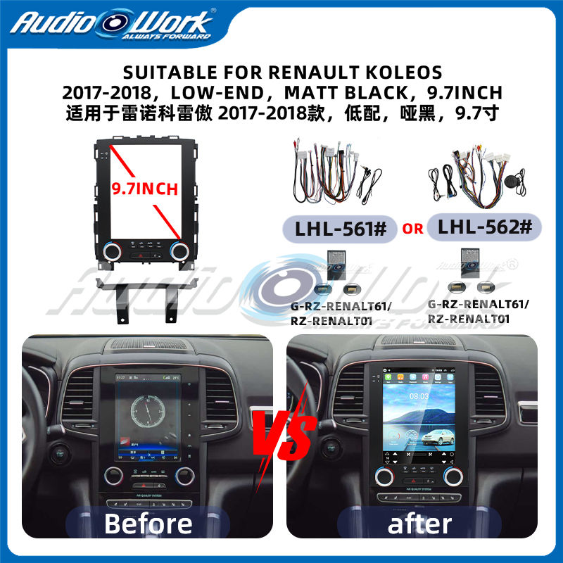 ชุดอุปกรณ์ตกแต่งภายในรถยนต์แบบเทสล่า ขนาด 9.7 นิ้ว ยี่ห้อ Lemonton สำหรับติดตั้งเครื่องเสียงในรถยนต์ ใช้กับ Samsung SM6 และ Renault Koleos ปี 2017-2018 สำหรับแผงหน้าปัดแบบ OEM