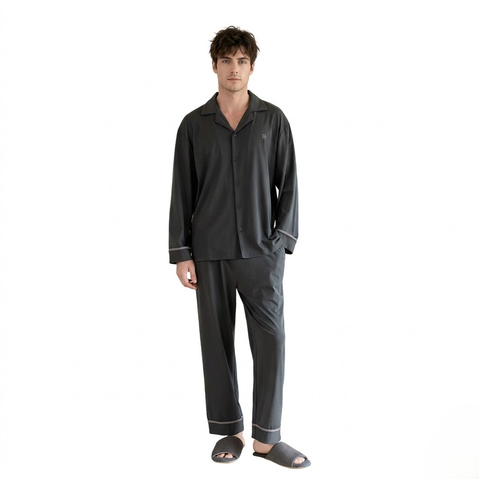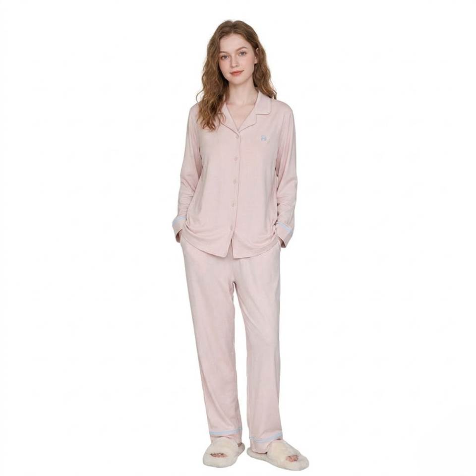 Lenzing Modal Pajamas for Women Men Couple Sleepwear Set Soft Long Staple Cotton Long Sleeve Padded Nightwear with Built-in Bra