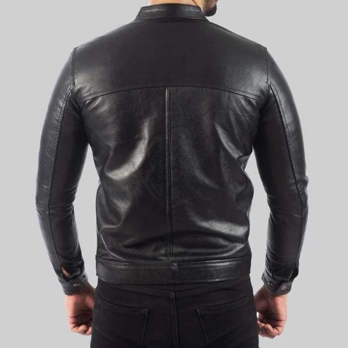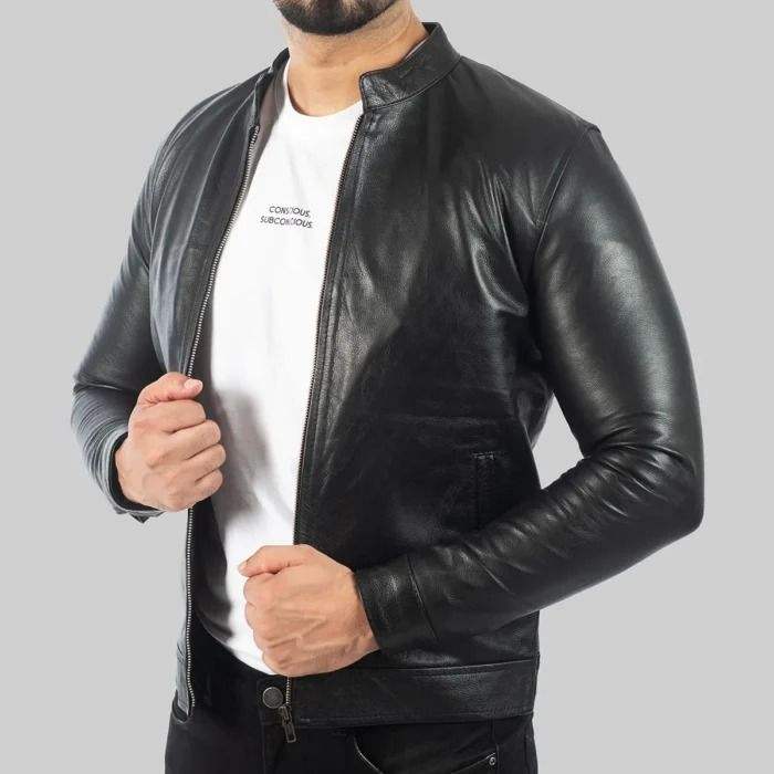 Leon แจ็คเก็ตนักขี่จักรยานหนังสีดำผู้ชาย