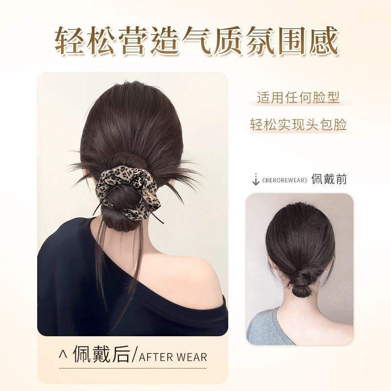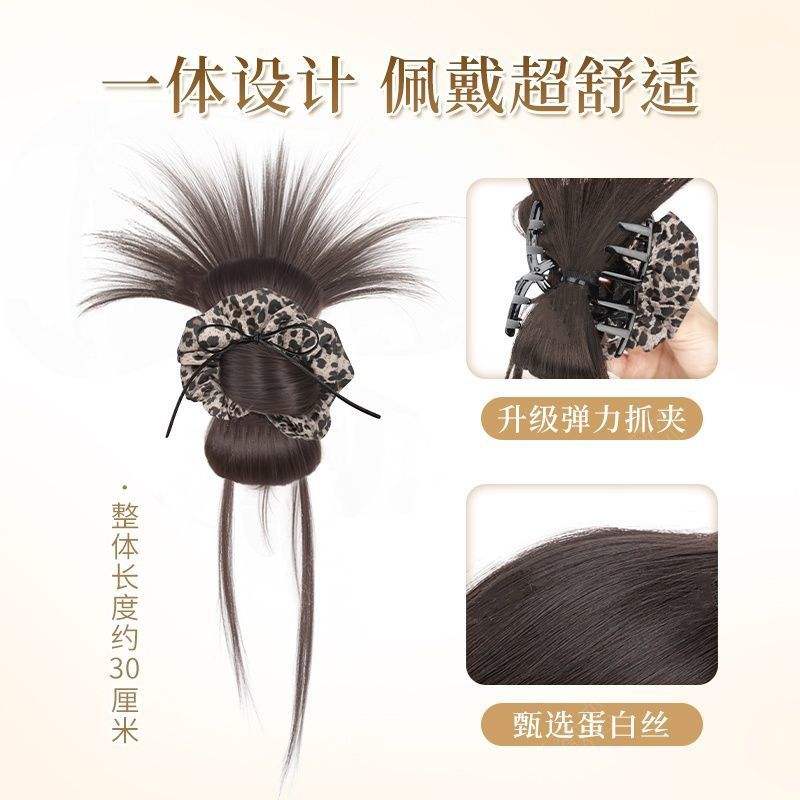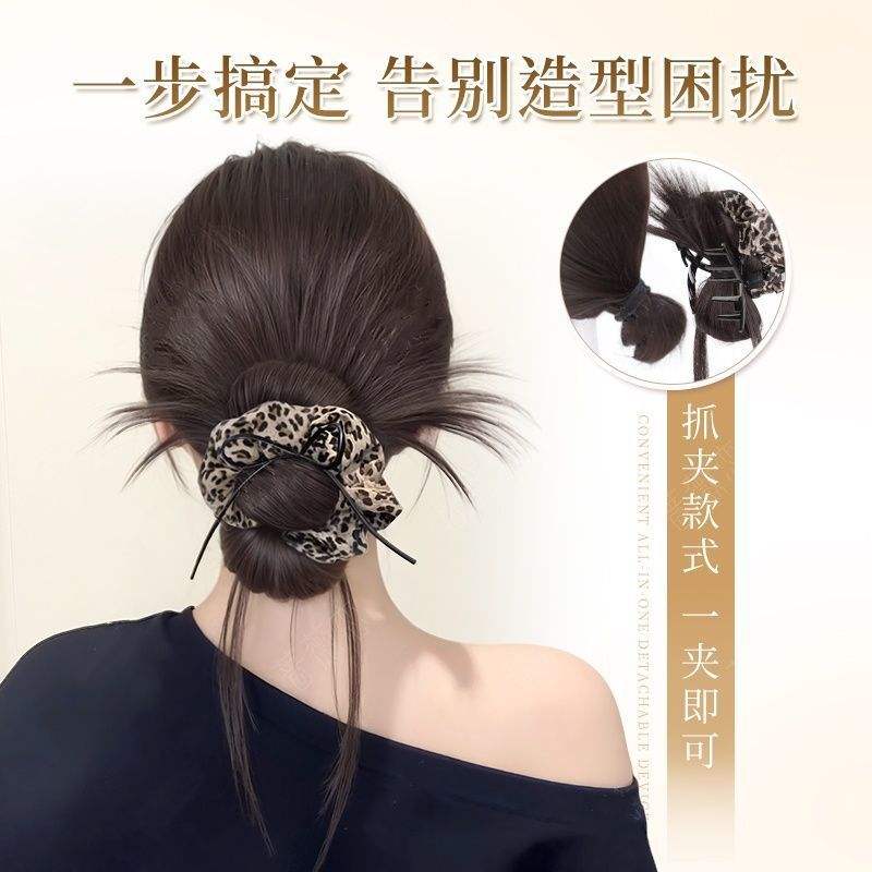 วิกผมทรงบันลายเสือดาวพร้อมกิ๊บติดผมทรงหางม้าทรงสูงสำหรับผู้หญิงสไตล์ฟูเป็นธรรมชาติ