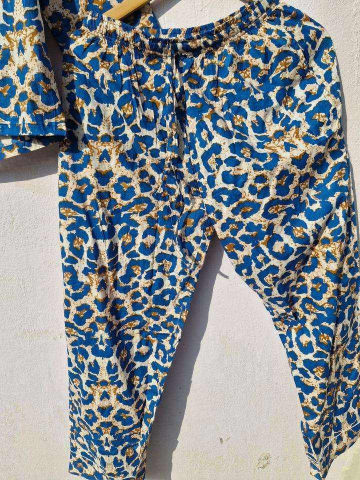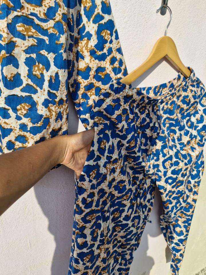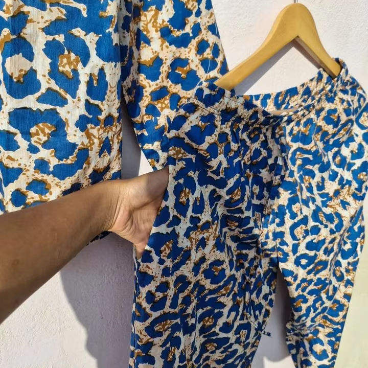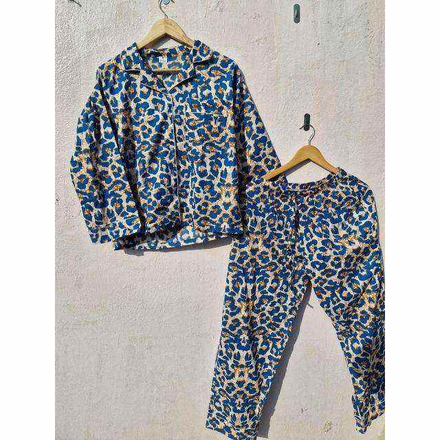 ชุดชุดนอนผ้าฝ้ายพิมพ์ลายเสือดาวสำหรับผู้หญิงชุดนอนลายทางแบบอินเดียทำมือชุดใส่อยู่บ้านผ้ามัสลินนุ่ม