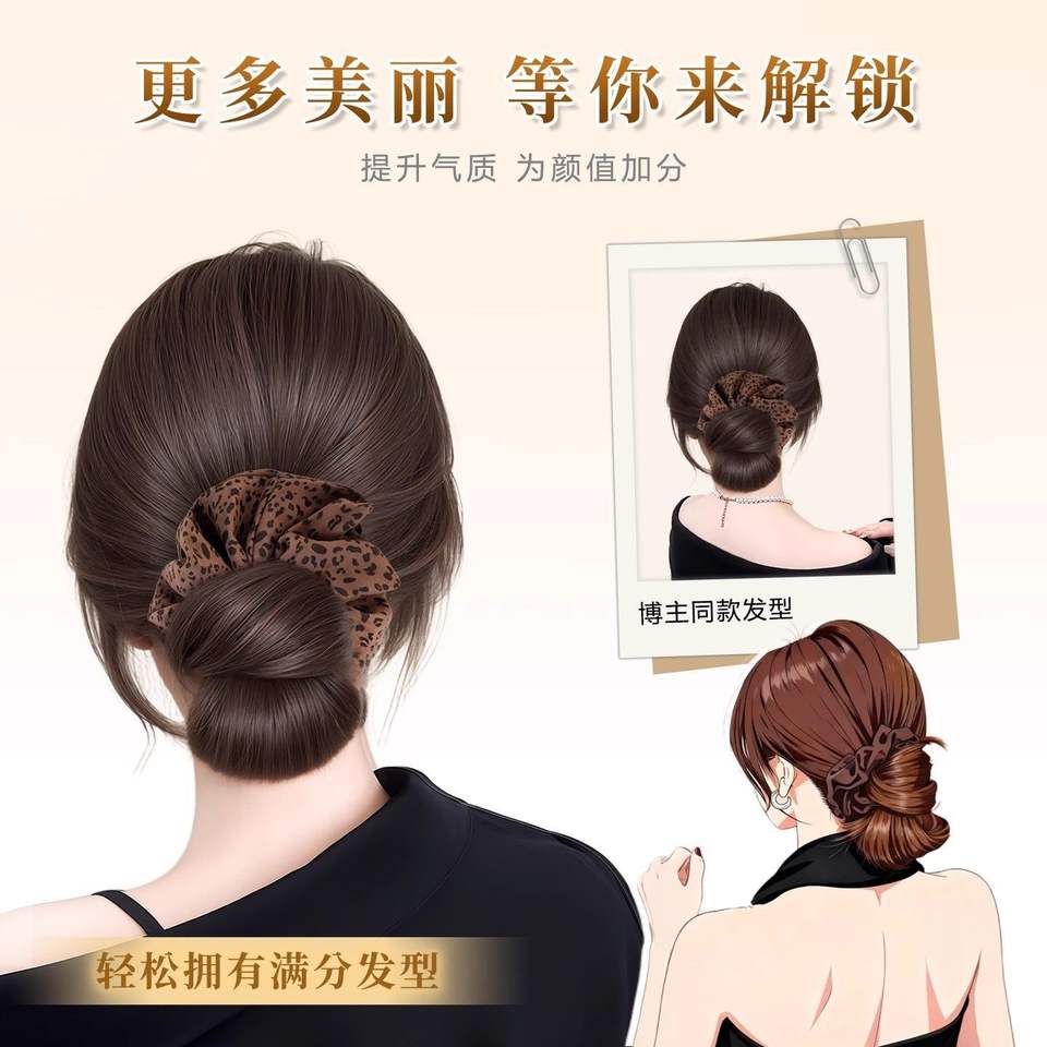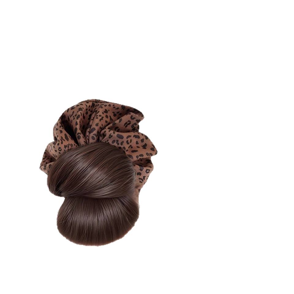 วิกผมทรงบันต่ำลายเสือดาวพร้อมคลิปสำหรับผู้หญิง ทำจากเส้นผมทนความร้อนสูง ผลิตด้วยมือ วิกผมหางม้า