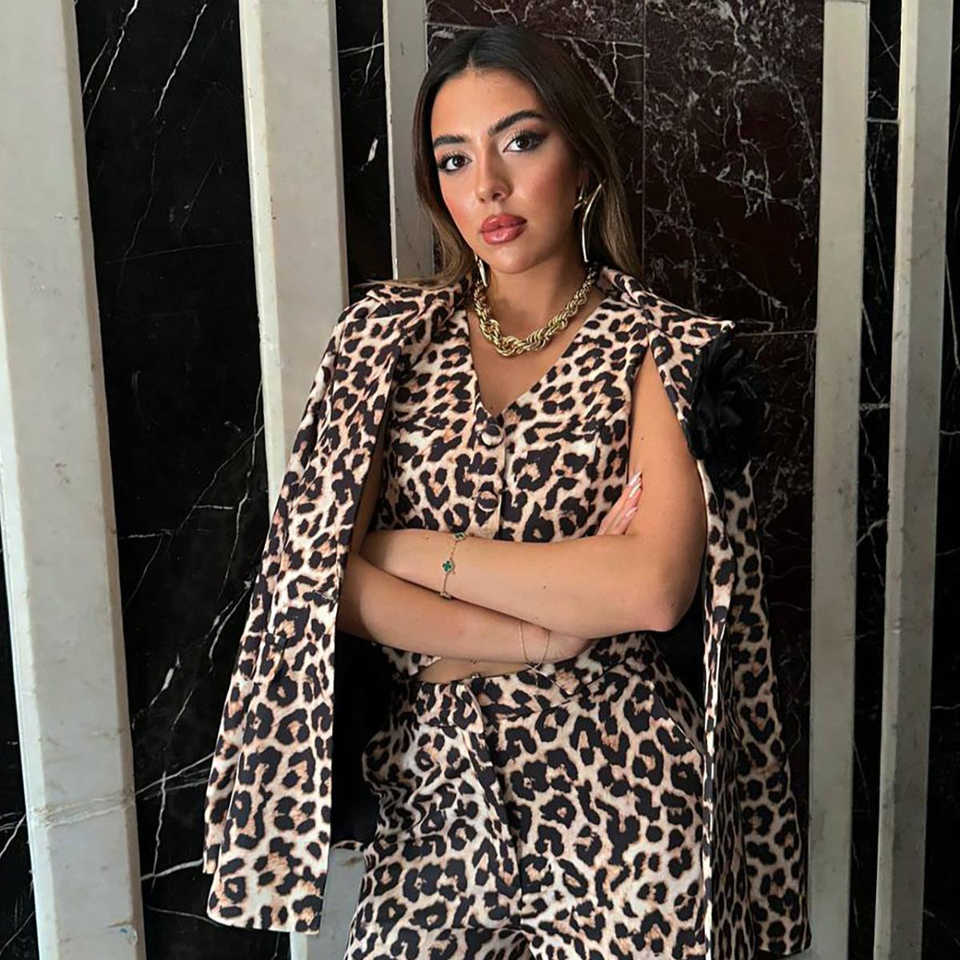 ชุดนอนลายเสือดาวสำหรับผู้หญิง ชุด 3 ชิ้น แขนยาว ผ้าทอเนื้อนุ่ม สวมใส่สบาย