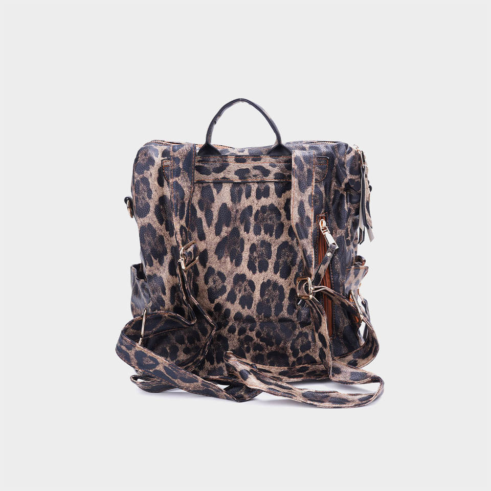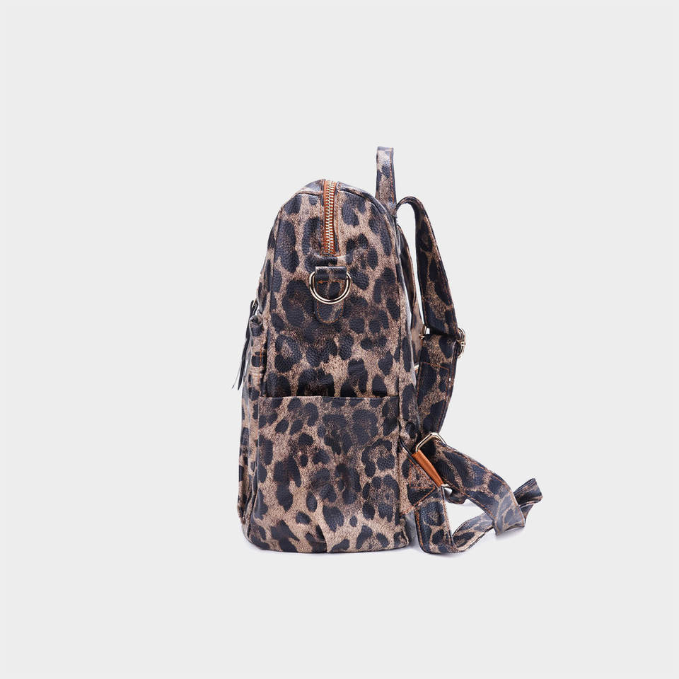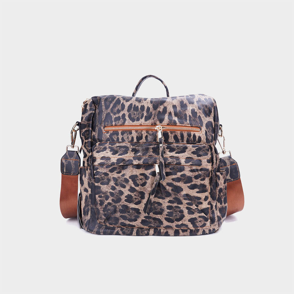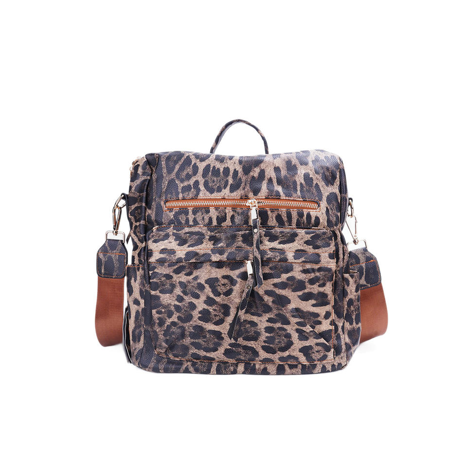 กระเป๋าเป้สะพายหลังโพลีเอสเตอร์กันน้ำสำหรับผู้หญิงลายเสือดาวความจุขนาดใหญ่สายสะพายไหล่แบบถอดได้กระเป๋าเดินทางแบบมีซิป รุ่น 152164