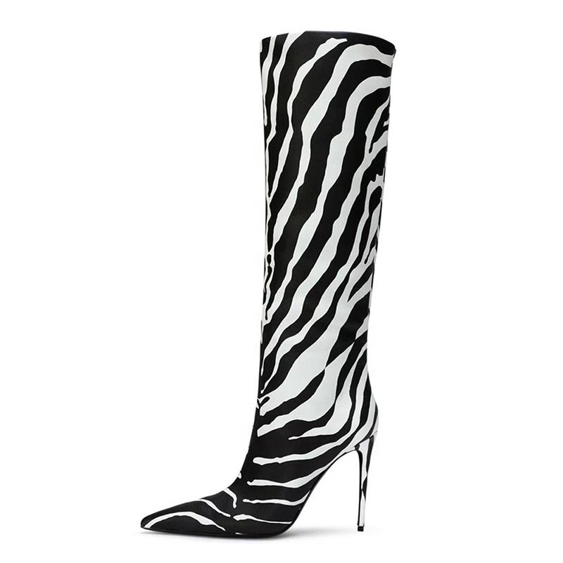 Leopard Prints Women Knee High Boots Thin Heel Animal Shoes Zebra Pattern on Women's Stiletto Long Booties