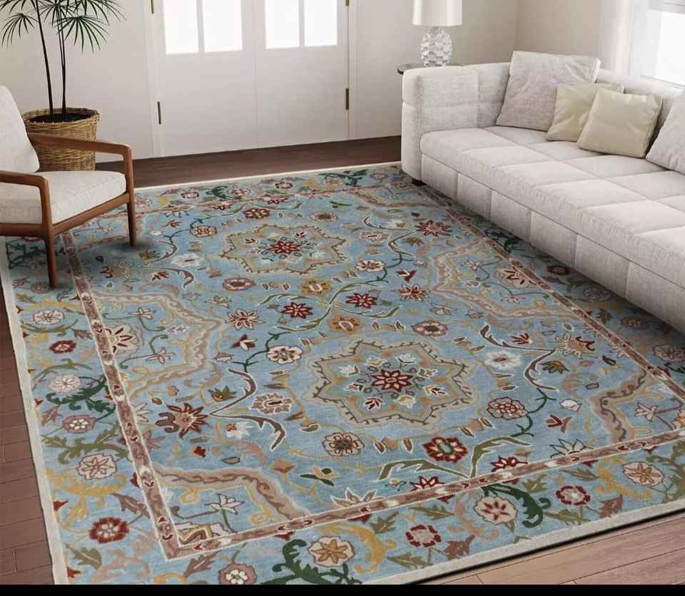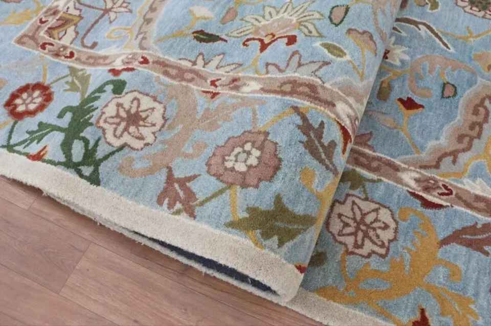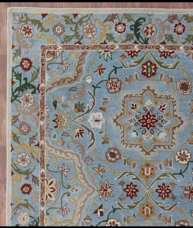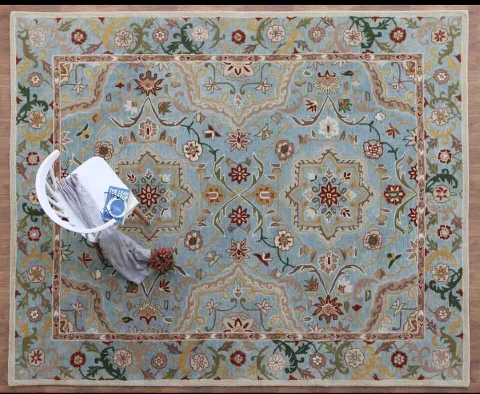 พรมปูพื้นขนสัตว์สไตล์100% ทำมือสไตล์ leslie parsian พอร์ซเลนสีฟ้าทำด้วยมือปรับขนาดให้เลือกได้
