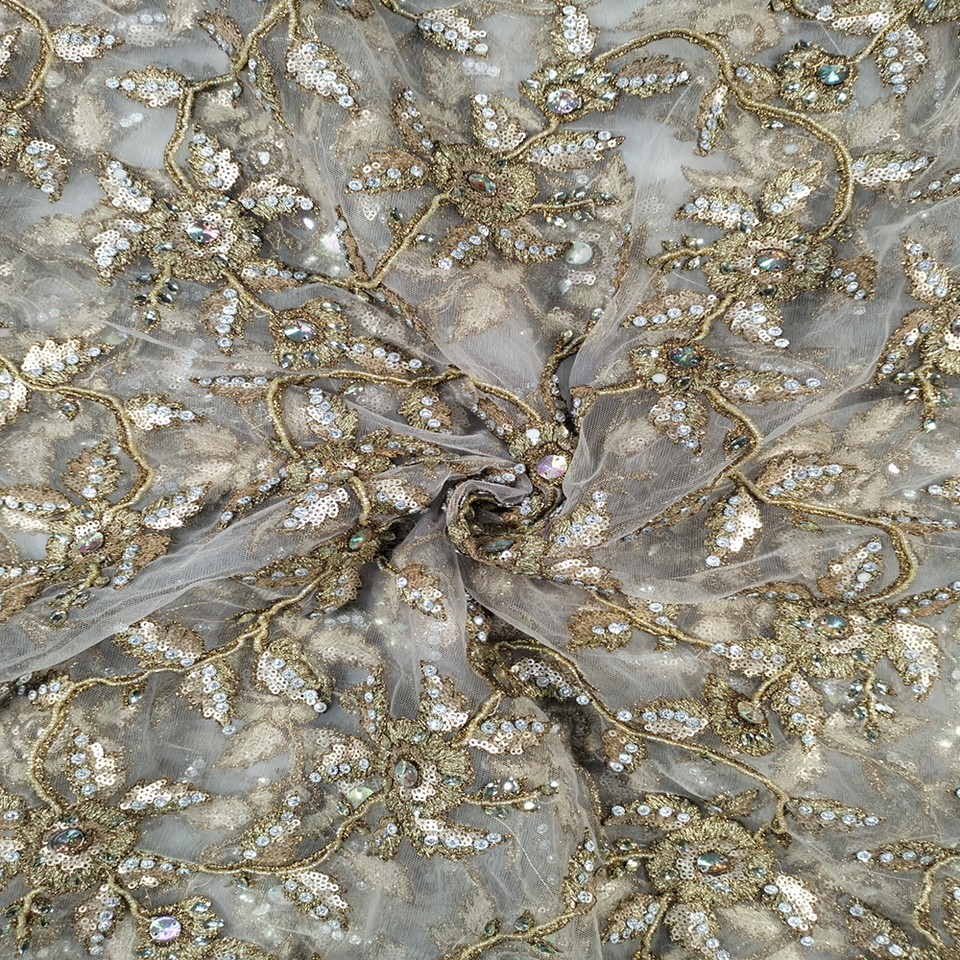 Letest เจ้าสาวลูกไม้สุทธิหนักลูกปัด Rhinestones เลื่อมผ้าฝ้ายโพลีเอสเตอร์วัสดุผ้าสําหรับชุดแต่งงานของผู้หญิงเสื้อผ้า