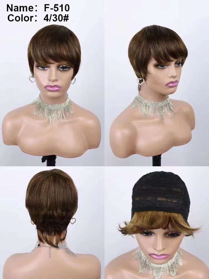 Letsfly วิกผมสั้นทรงตรง Pixie ราคา 17.6 ดอลลาร์ วิกผมแท้ 100% ผลิตด้วยเครื่องจักร ผมบราซิล หลายสี วิกผมขายส่งสำหรับผู้หญิงผิวสี