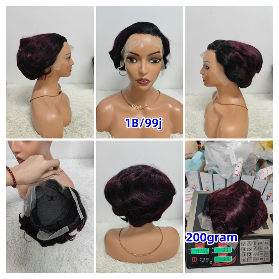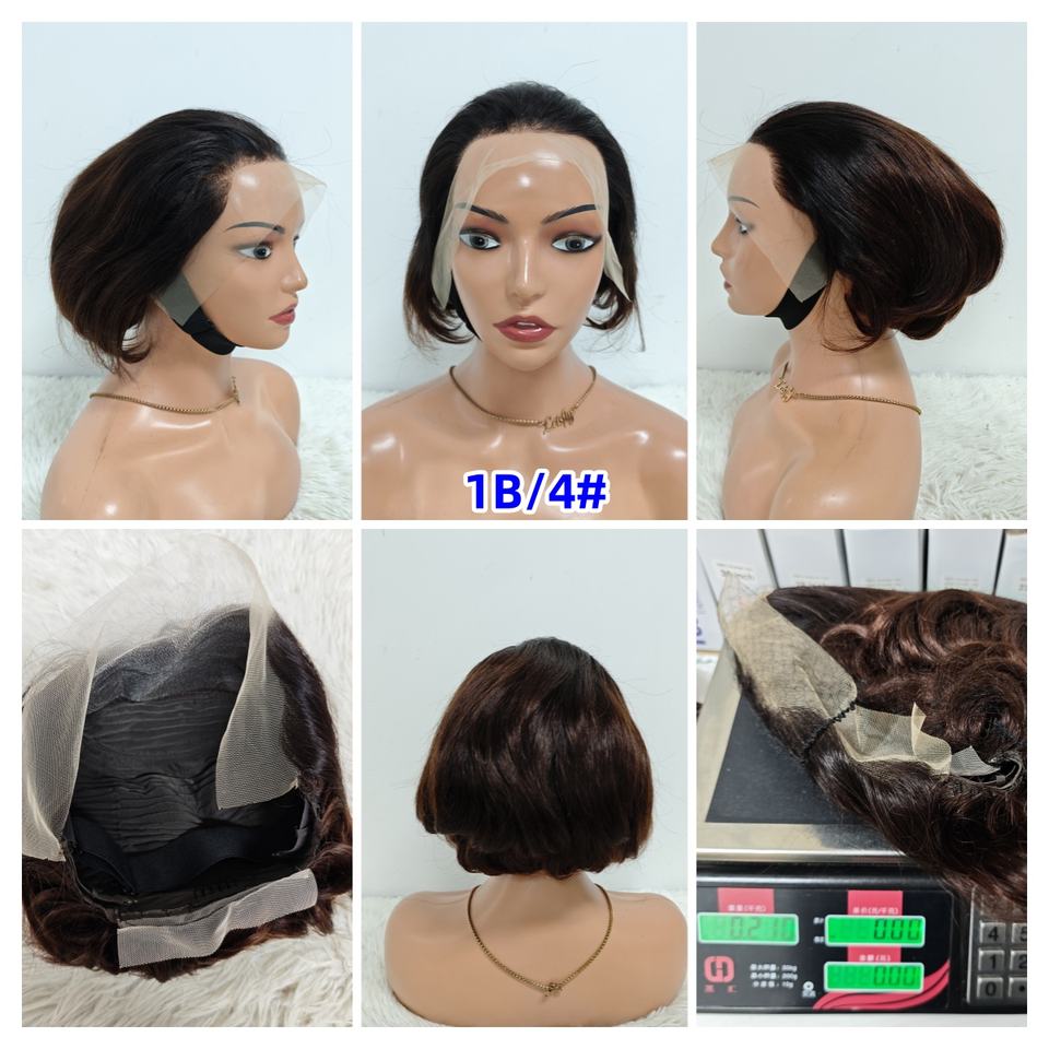 โปรโมชั่น Letsfly วิกผมสั้นทรงพิกซี่ 26 ดอลลาร์ น้ำหนัก 200 กรัม แบบเต็มศีรษะ 13x4 พร้อมเชือกผูกด้านหน้า สีน้ำตาลไฮไลท์ ผมแท้ 100% ความยาว 10 นิ้ว ขายส่ง