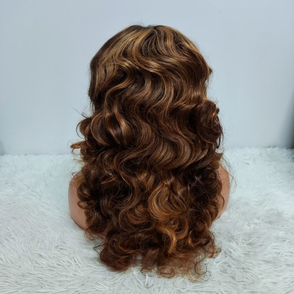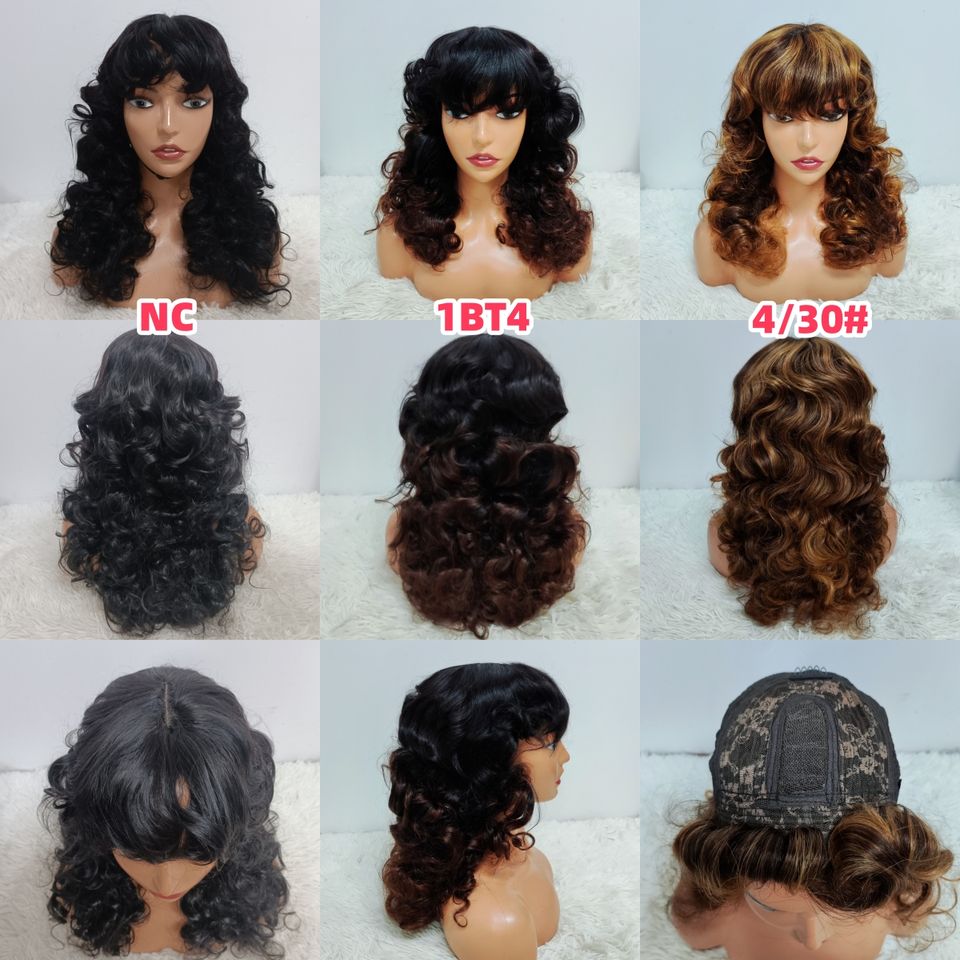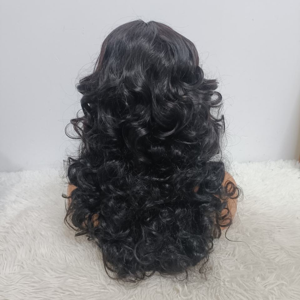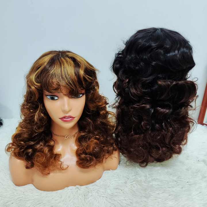 Letsfly วิกผมลอนคลื่นแบบหลวมพร้อมหน้าม้า ราคาพิเศษ 78$ ขนาด 22 นิ้ว ฐานลูกไม้ 1×3 เส้นผมแท้ Remy เกรด 10A จัดเรียงเกล็ดผมอย่างดี