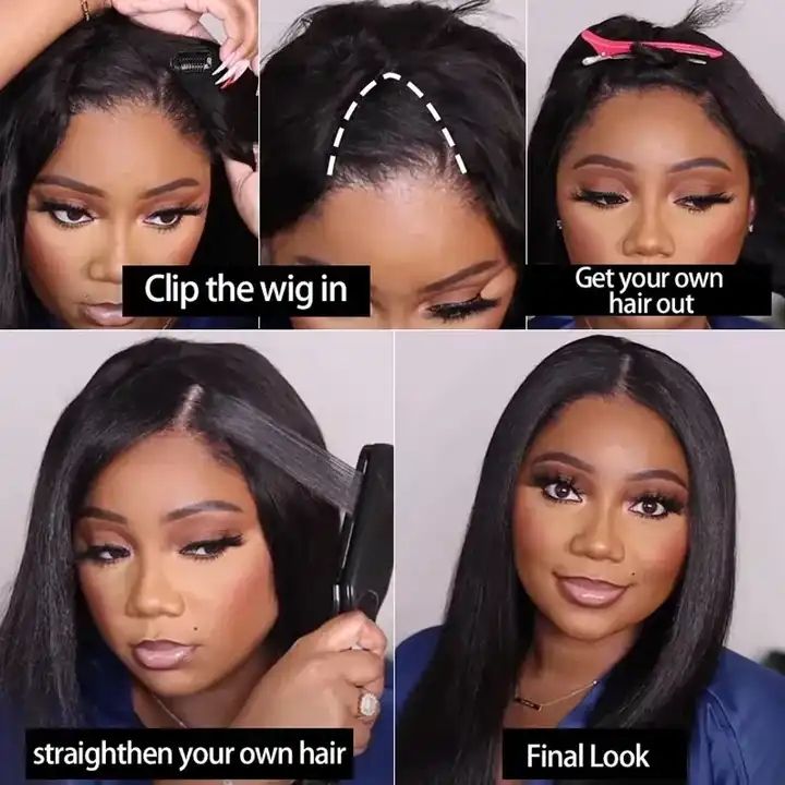 เครื่องวิกผม Glueless V Part ของ Letsfly ทํา U รูปร่างตรงผมมนุษย์ Perruque สําหรับผู้หญิงผิวดําสวมผมง่าย