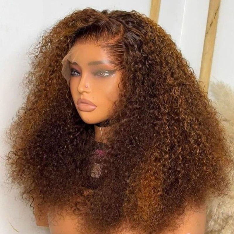 Letsfly Hair Afro Kinky ความหนาแน่น 200% ผมธรรมชาติแบบถอนขนมาแล้ว สี 4/27 # วิกผมลูกไม้แบบเต็มศีรษะ 13x4 ขนาด 18 นิ้ว ผมแท้ ขายส่ง