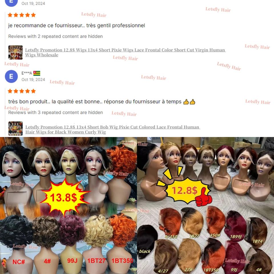 โปรโมชั่น Letsfly วิกผมบ๊อบสั้นลอนคลื่นหลวม ราคา $13.8 วิกผมหน้าผากลูกไม้ 13x4 ผมแท้ 100% วิกผมบราซิลแบบหยิก
