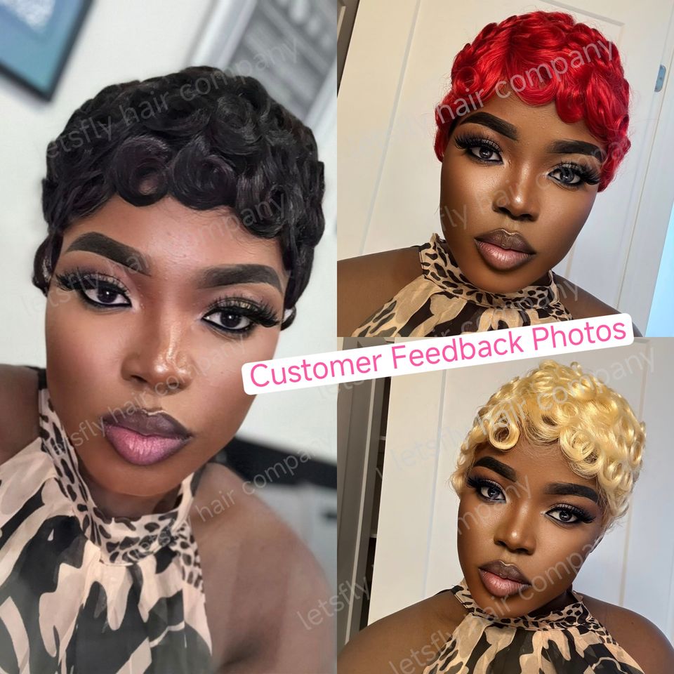 โปรโมชั่น Letsfly วิกผมทรงพิกซี่สั้น ราคา 9 ดอลลาร์ 1 ชิ้น ผมแท้ 100% ผลิตด้วยเครื่องจักร ขายส่งสำหรับผู้หญิงผิวสี