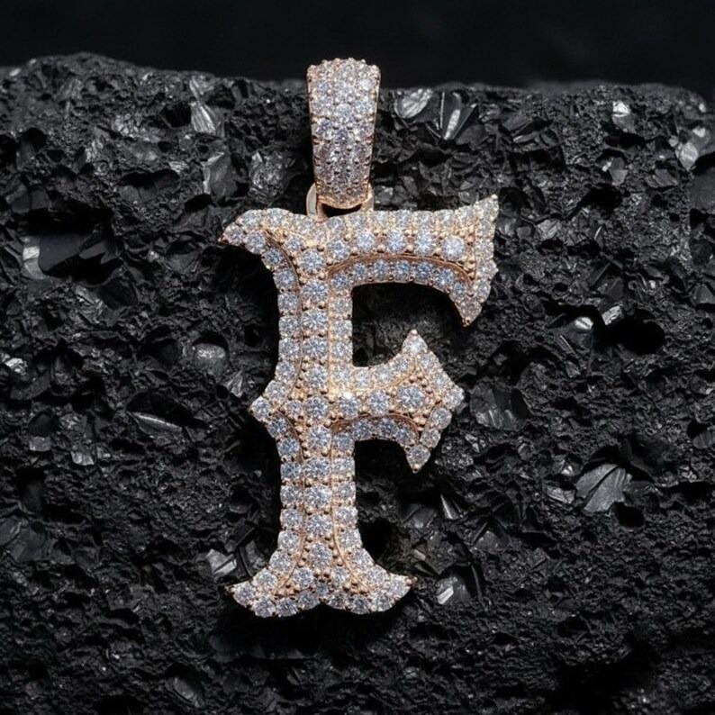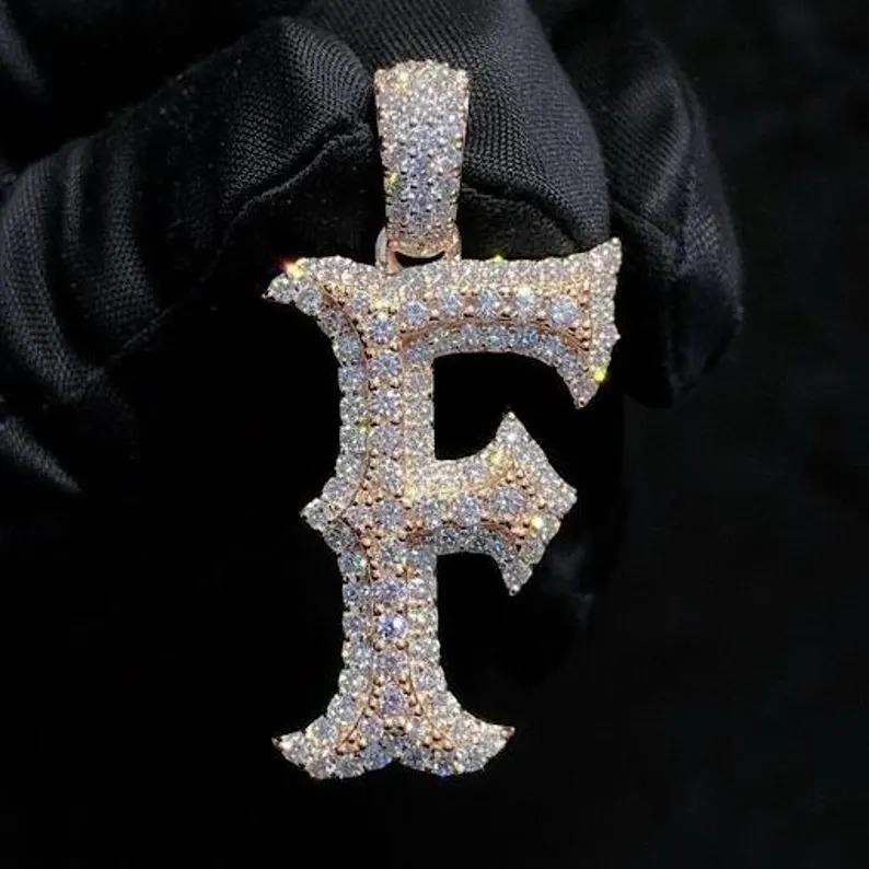 สร้อยคอจี้ตัวอักษร F สำหรับผู้ชาย ทำจากเงินแท้ 925 ประดับเพชรโมอิสซาไนต์แบบช่อง งานฝังแบบ Iced สไตล์ฮิปฮอป เครื่องประดับทันสมัย