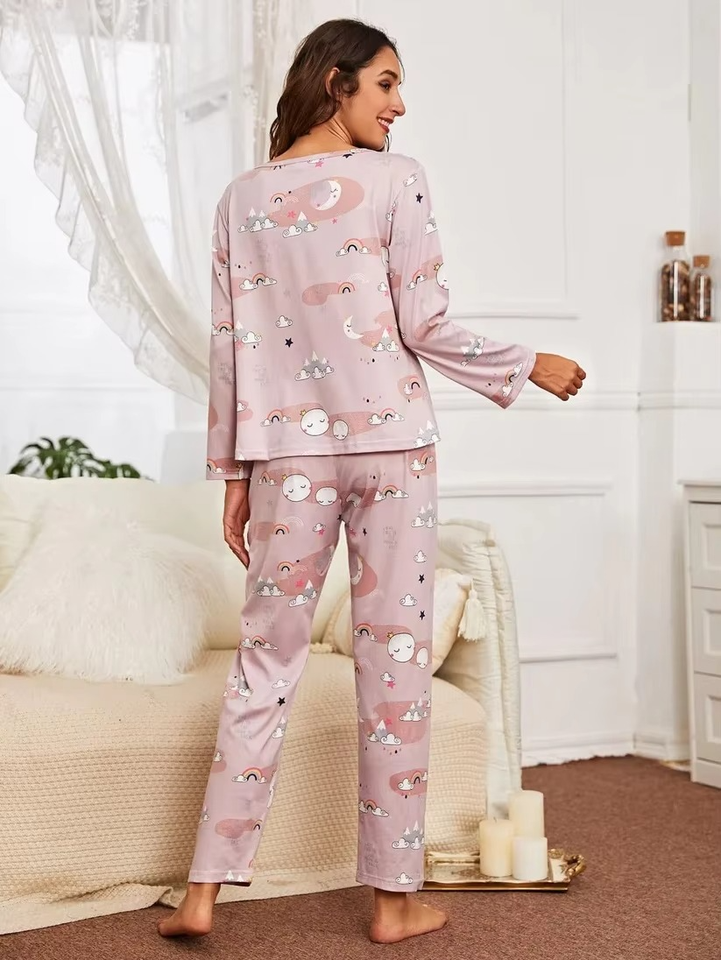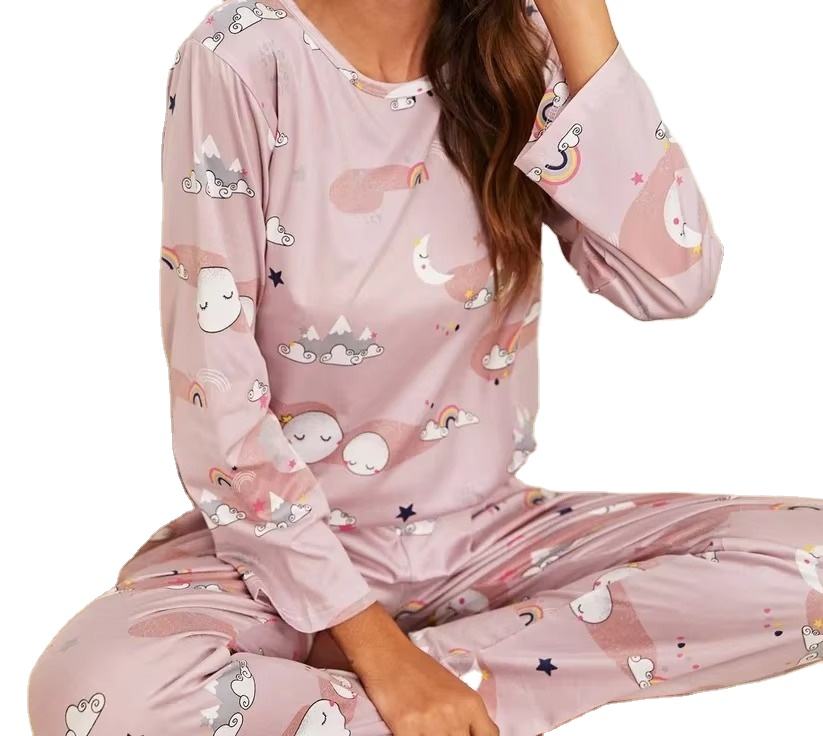 ชุดนอนผู้หญิงพิมพ์ลายตัวอักษร2ชิ้นคอกลมระบายอากาศสวมใส่สบาย