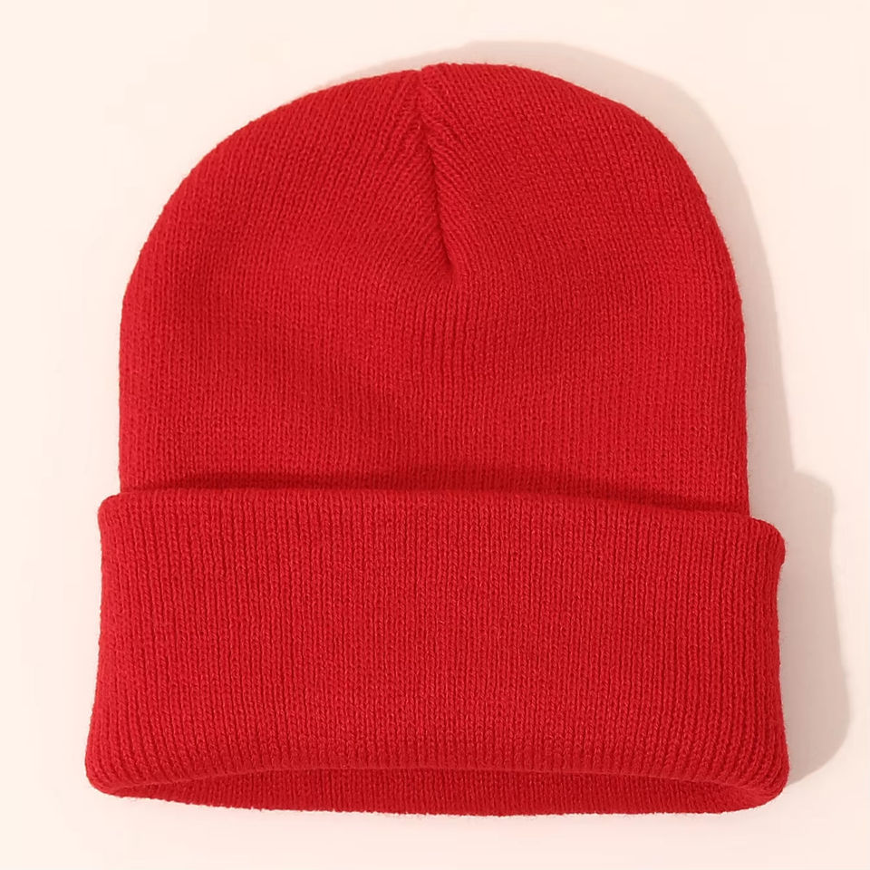 หมวกบีนนี่ลายตัวอักษรแจ็คการ์ดสำหรับผู้ใหญ่หมวกถักลายหัวกะโหลกสีแดง2025แฟชั่น100% อบอุ่นทนทาน