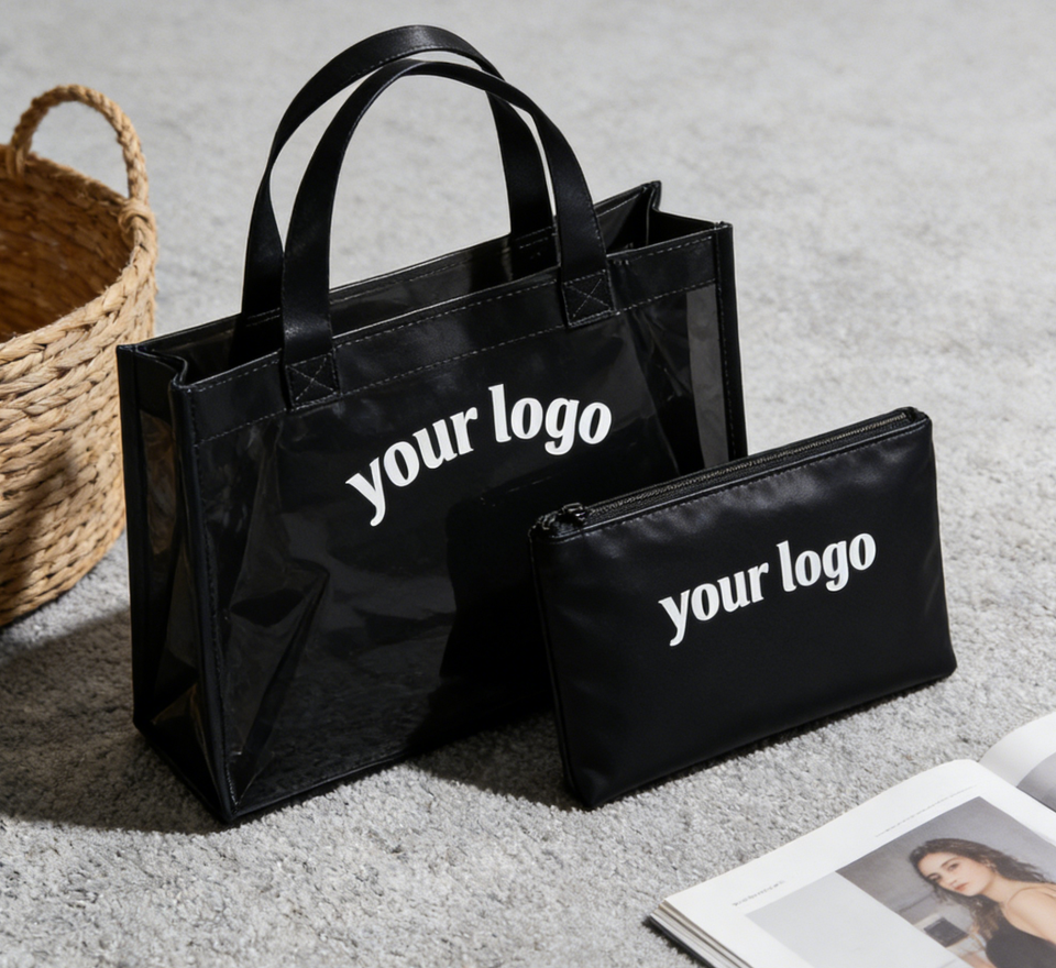 กระเป๋าหิ้วชายหาดแบบใสกันน้ำลายตัวอักษร กระเป๋าช้อปปิ้งพีวีซี พร้อมโลโก้พิมพ์ตามสั่ง