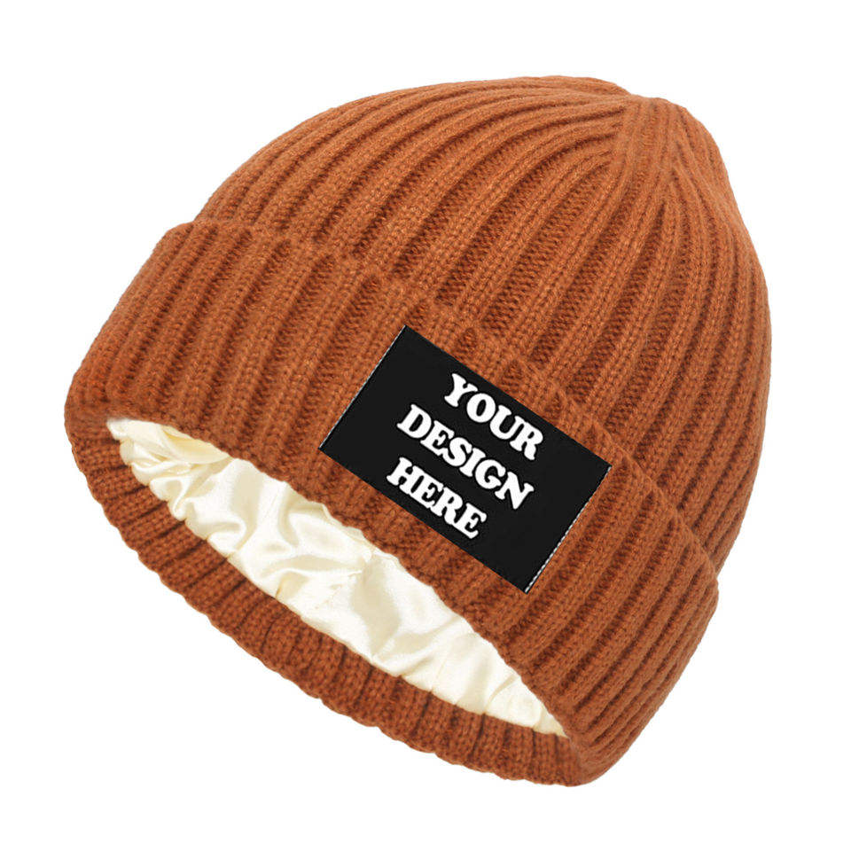 หมวกบีนนี่ลายตัวอักษรแบบแจ็คการ์ด OEM หมวกบีนนี่ถักแบบริบสำหรับฤดูหนาว หมวกบีนนี่แบบเรียบสำหรับทุกเพศ ซับในผ้าซาติน หมวกบีนนี่อุ่นๆ ออกแบบได้ตามสั่ง