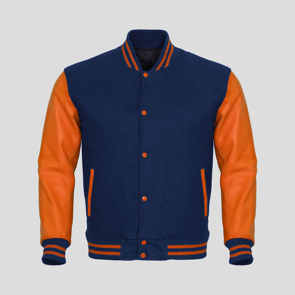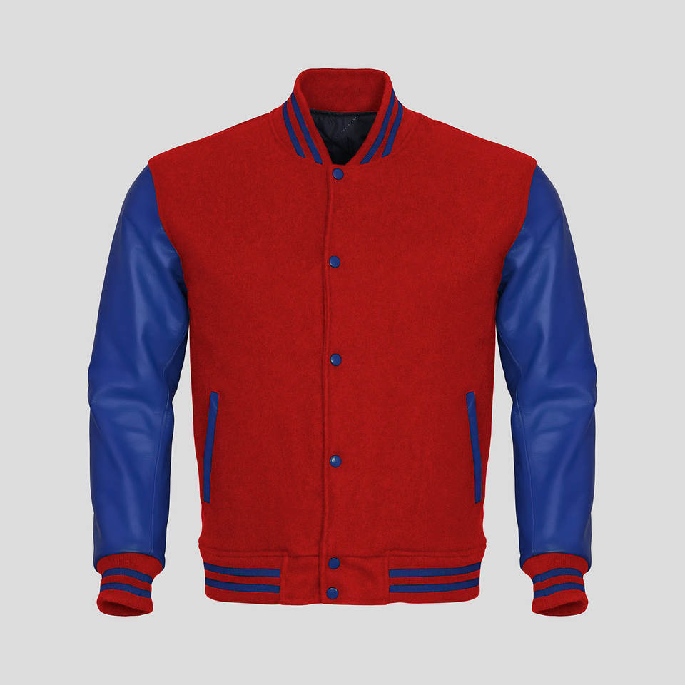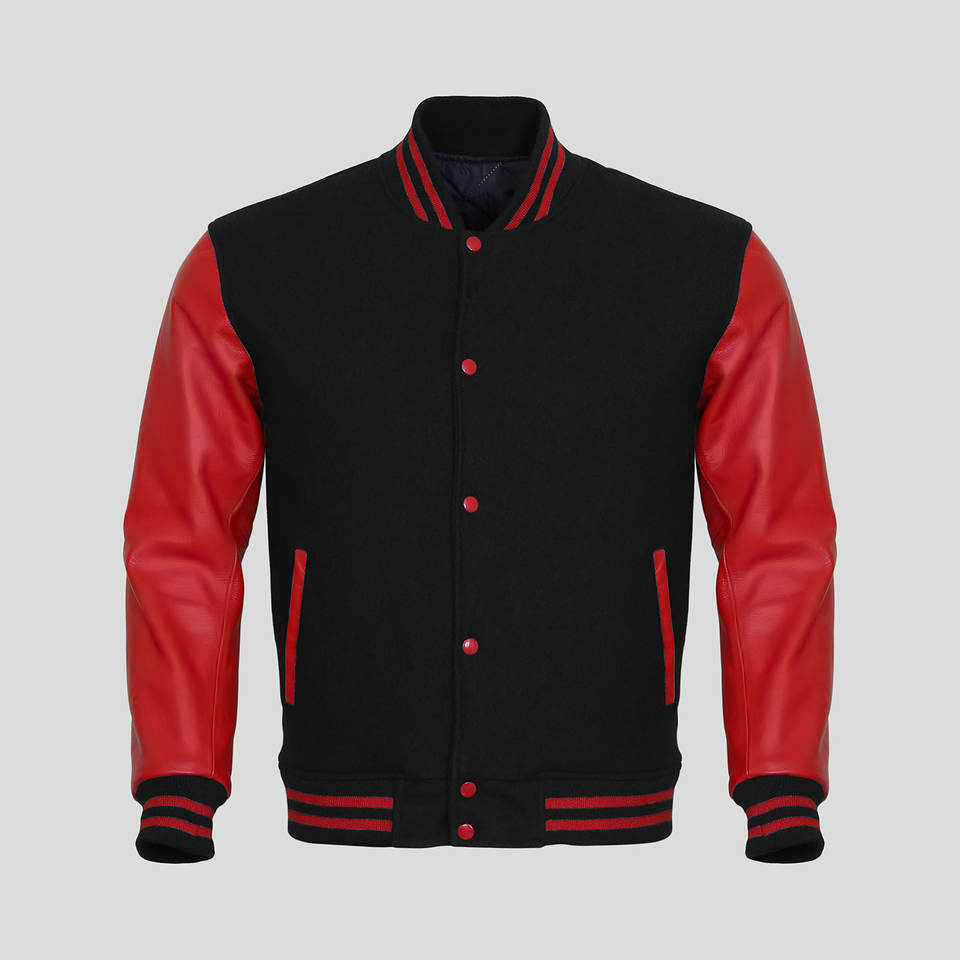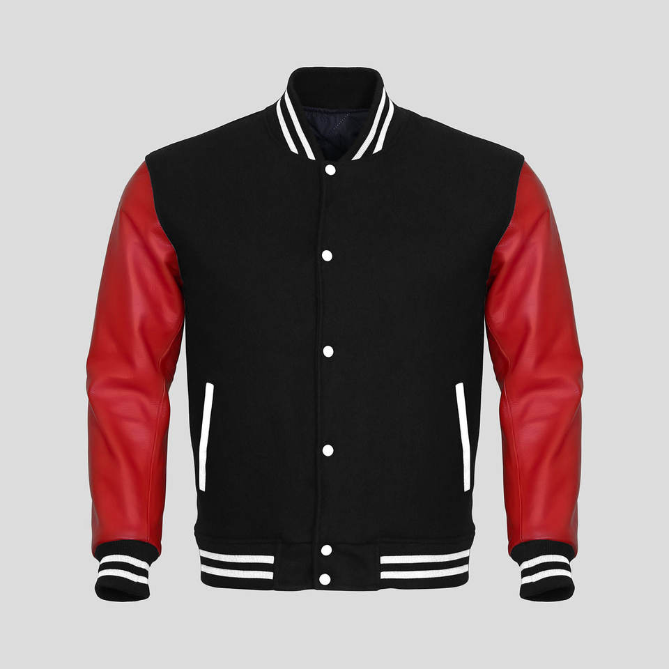แจ็คเก็ต Letterman แจ็คเก็ตเบสบอลทรงบอมเบอร์สำหรับผู้ชาย แจ็คเก็ต Varsity ทำจากแขนหนังแท้พร้อมตัวเสื้อทำจากผ้าขนสัตว์