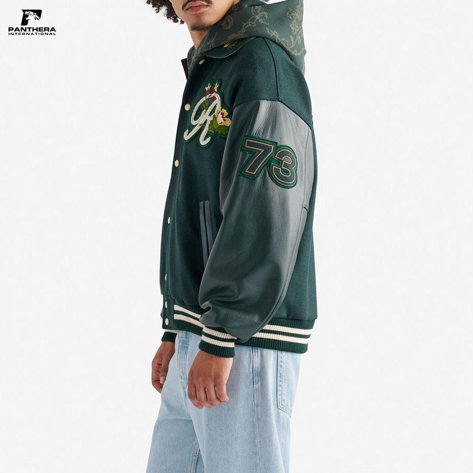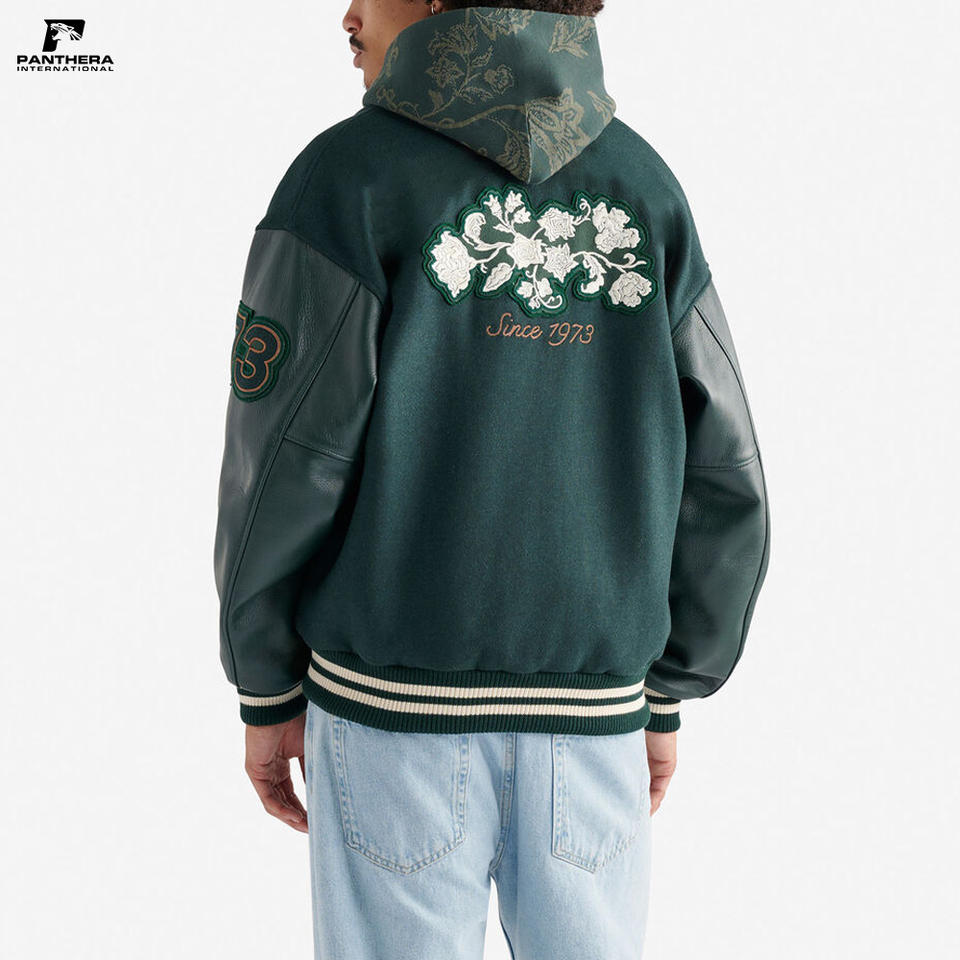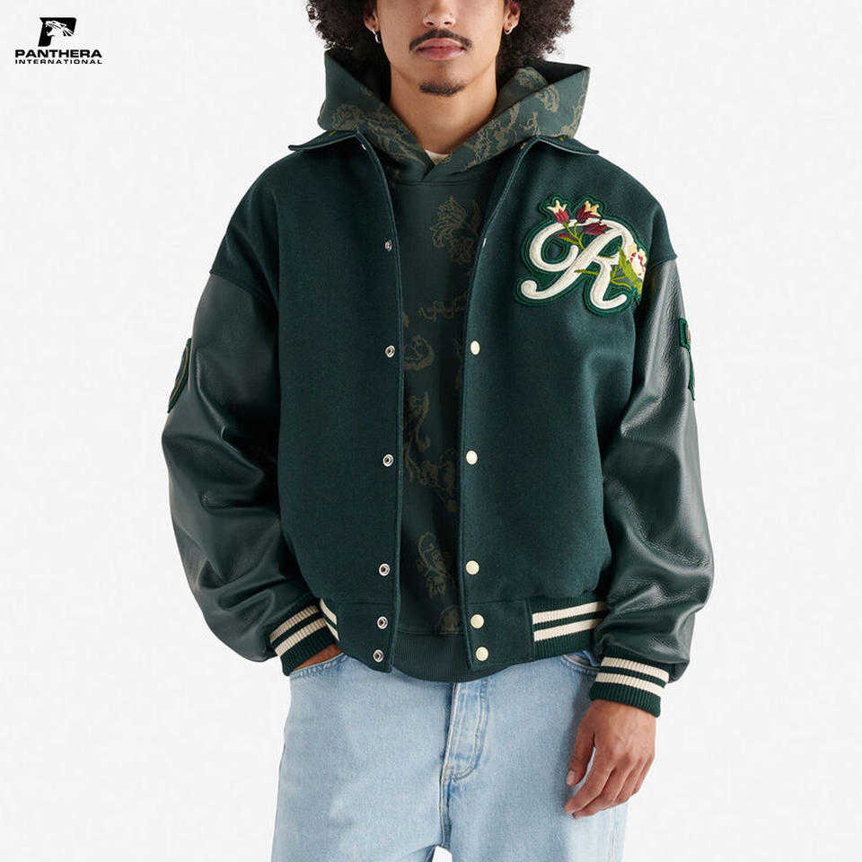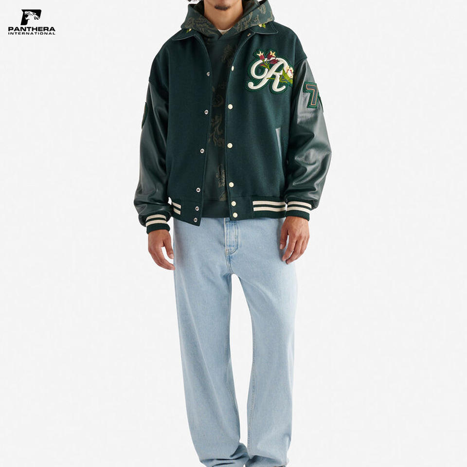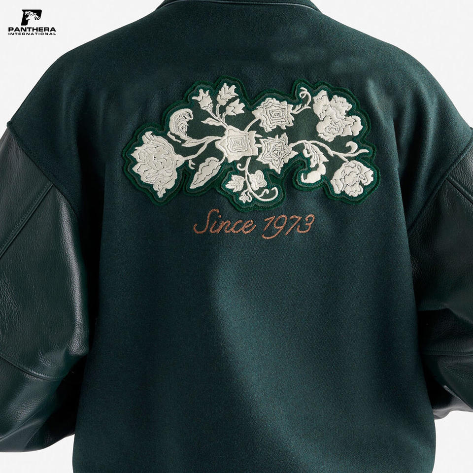 เสื้อแจ็คเก็ตวูลแบบยูนิเซ็กซ์ ไซส์พลัส สไตล์เลตเตอร์แมน วาซาร์ตี้ สำหรับฤดูหนาว คอตั้งแบบริบ แต่งลายปักดอกไม้โลโก้เชนิลล์