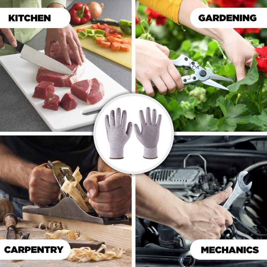 ถุงมือป้องกันการบาดระดับ 5 สำหรับงานส่วนตัว ถุงมือเคลือบ PU ทนต่อการเสียดสี