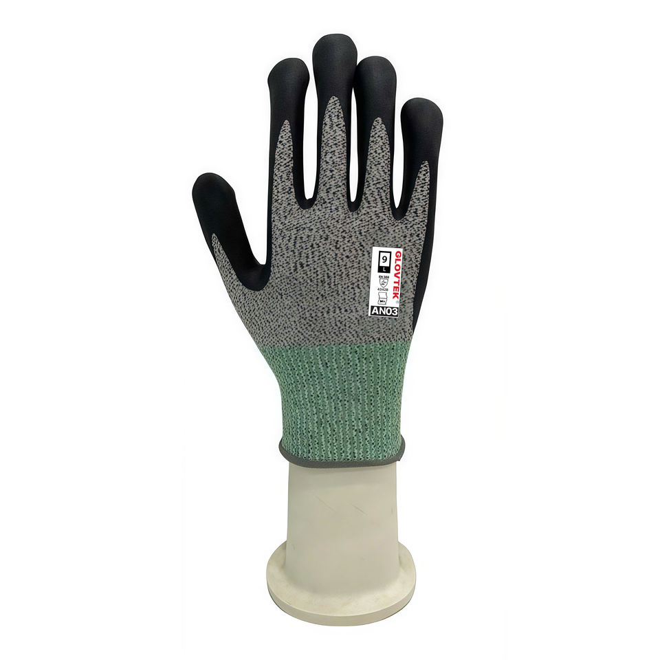 ถุงมือทำงานไนไตรล์กันการสั่นสะเทือนระดับ 5 ป้องกันการบาด ทนทาน เคลือบสแตนเลสที่ฝ่ามือ ยืดหยุ่น ระบายอากาศได้ดี ปราศจากน้ำยาง