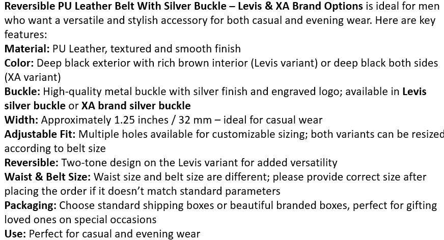 เข็มขัดลีวิสแบบกลับด้านได้ ขนาด 32 มม. หัวเข็มขัดสีเงิน สายหนังคลาสสิก ปรับได้ ทนทาน มีสไตล์ ใส่ได้ทุกวัน อุปกรณ์เสริมระดับพรีเมียมสำหรับผู้ชาย