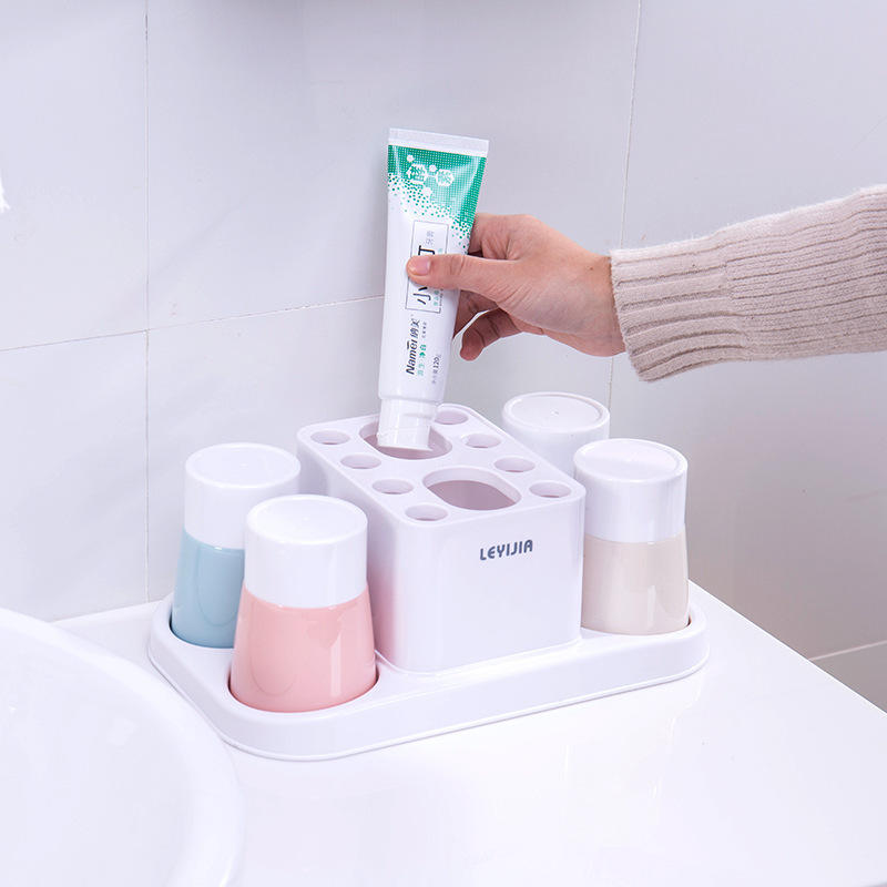 ชุดที่วางแปรงสีฟัน Leyijia พร้อมแก้วน้ำ ชั้นวางเก็บของรูปทรงสี่เหลี่ยมผืนผ้าสำหรับห้องน้ำ ทำความสะอาดง่าย เหมาะสำหรับครอบครัวสามคน