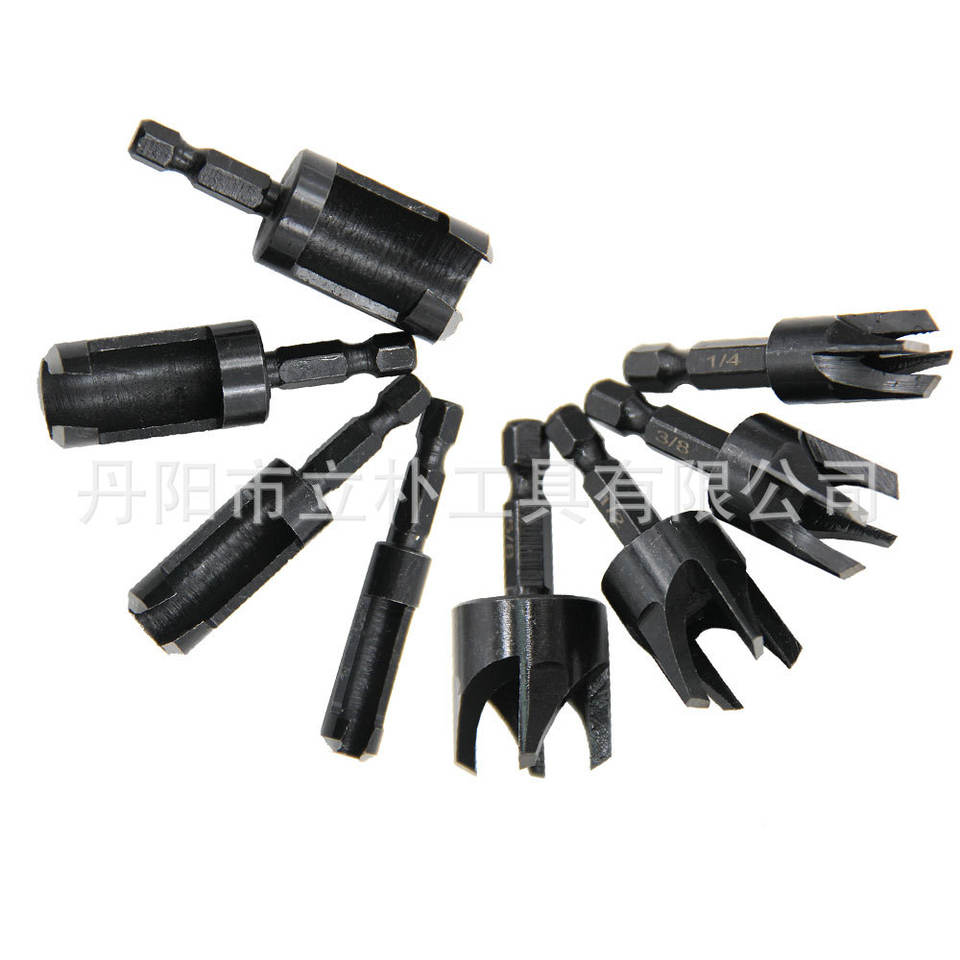 ดอกสว่านคอร์กสีดำ ก้านหกเหลี่ยม 8 ชิ้น ถุง OPP [202g]
